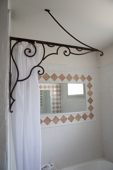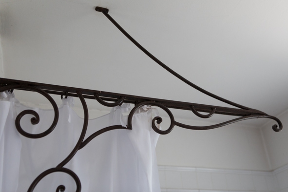 Magnifique et original, ce support pour rideau de douche en fer forgé est à la fois sobre et élégant.