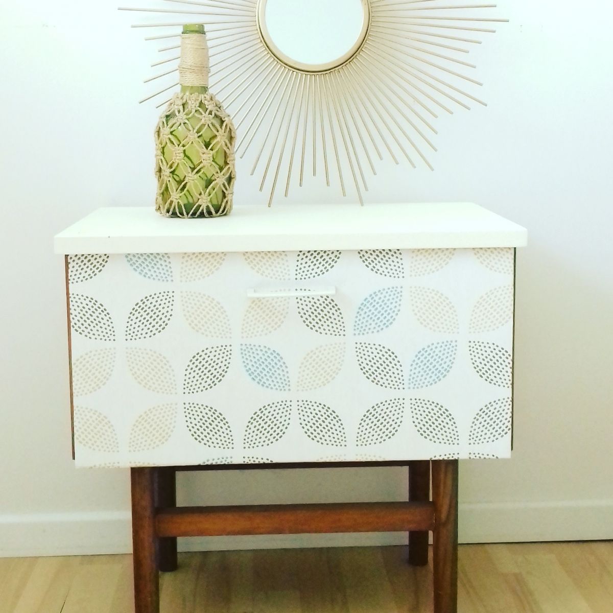 Délicieux chevet 60's rénové, porte à rabat offrant une capacité de stockage.