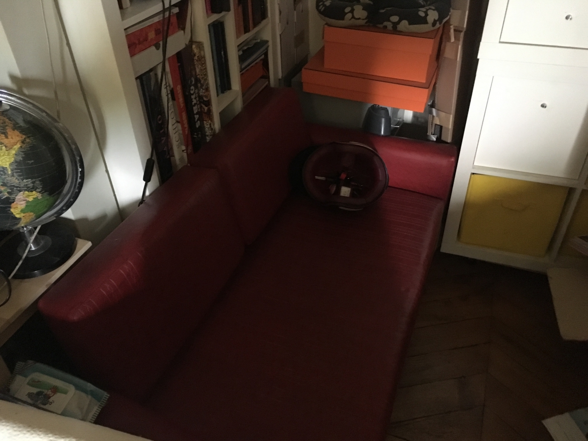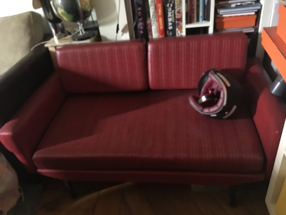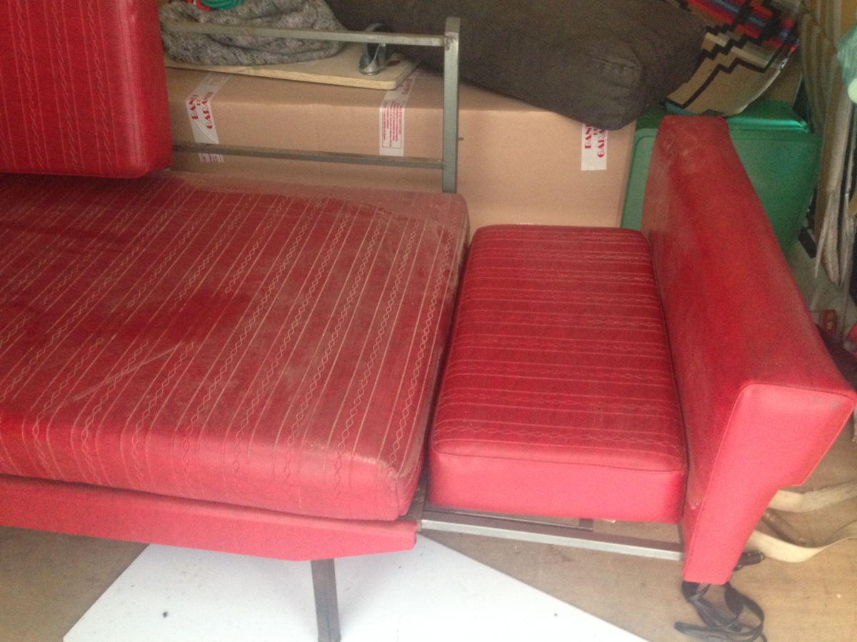Canapé vintage année 58 , Rouge, impeccable, sortit de chalet montagne en Italie, fermé depuis 1970, impeccable, en sky gaufré, structure ok .. dans son jus, a été nettoyé, super clean !