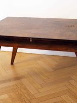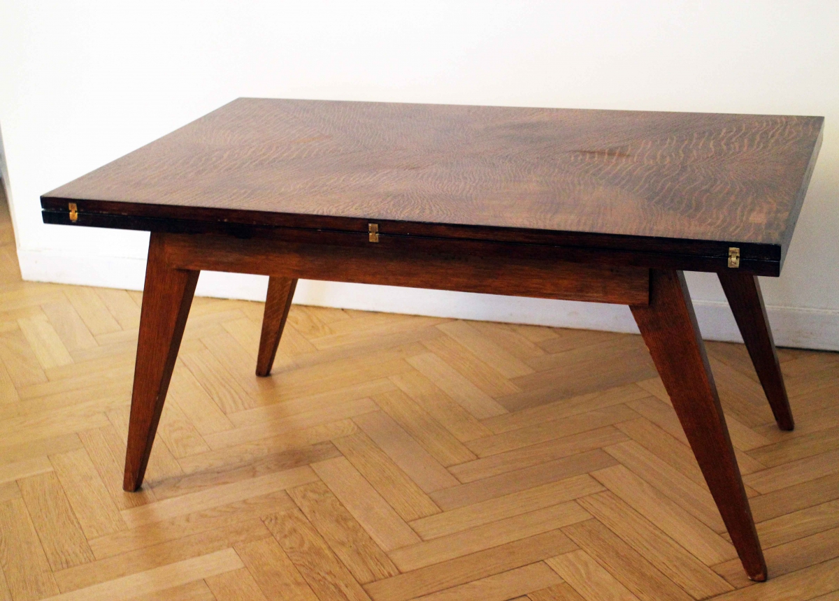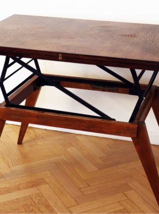La table portefeuille « Révélation » est crée en 1952 sous le nom de « Magic ». Brevetée en 1953, c’est l’un des rares meubles de cette période à cumuler ces atouts : robustesse incontestable, gain de place évident grâce à son système dépliant et réhaussable.