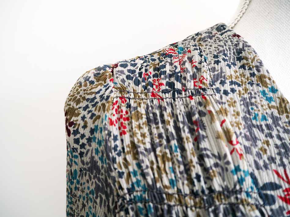 Epaules légèrement froncées. Manches 3/4.