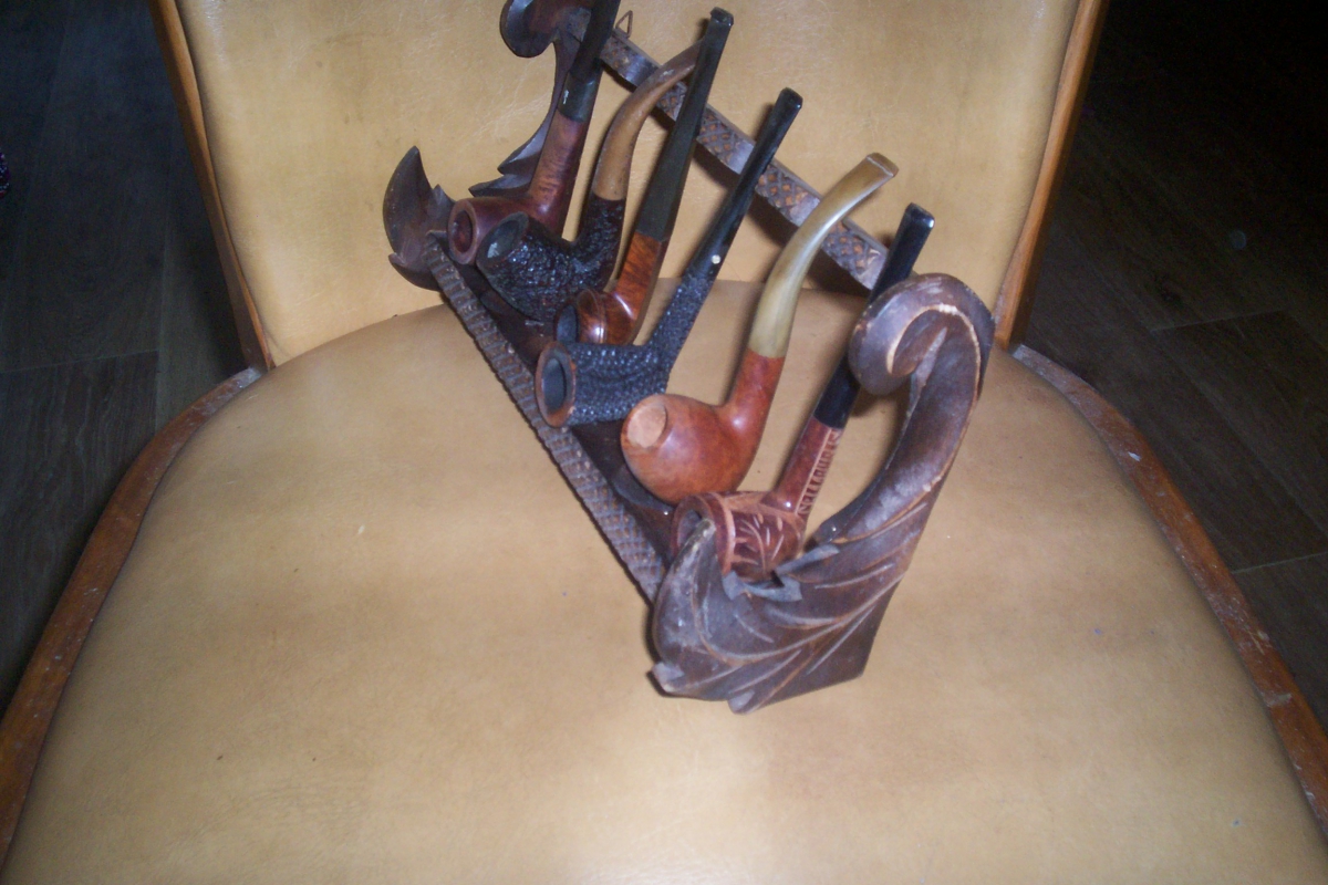 porte pipe en bois murale pour 6 pipes les pipes ne sont pas à vendre juste en photos pour démonstration seul le porte pipes est à vendre .