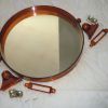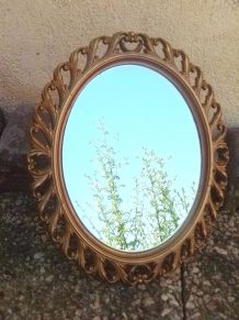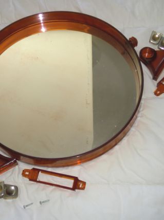 Miroir typiquement vintage . Idéal en déco d'entrée ou salle de bains. Complet. Dimension : 42 cm de diamètre. couleur orangé.