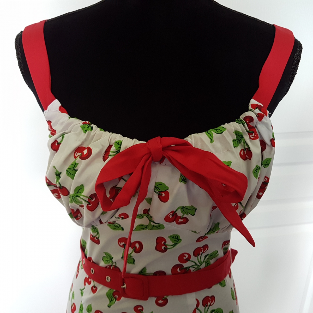 Robe pinup motifs cerises, vendue avec la ceinture.