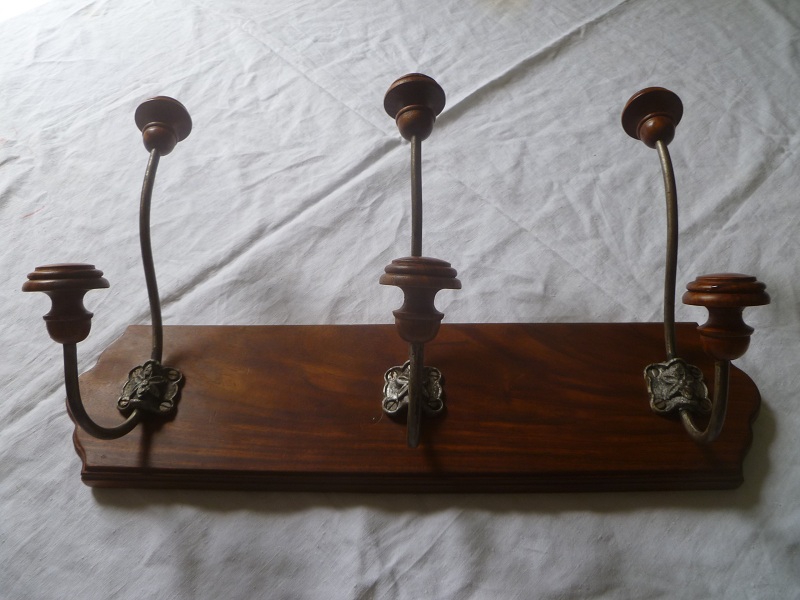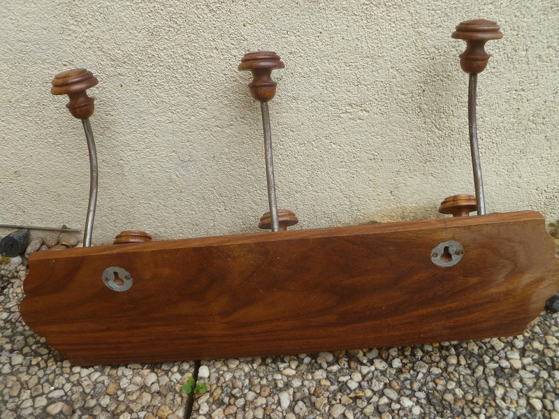 porte manteau , 6 pateres bois+metal , vintage