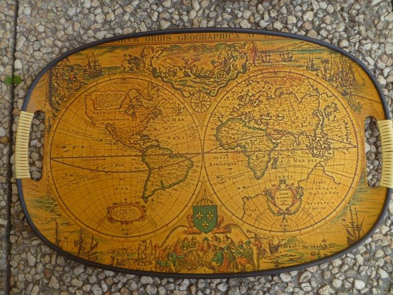 Plateau en « résine - fibre de verre », illustré d’une mappemonde,