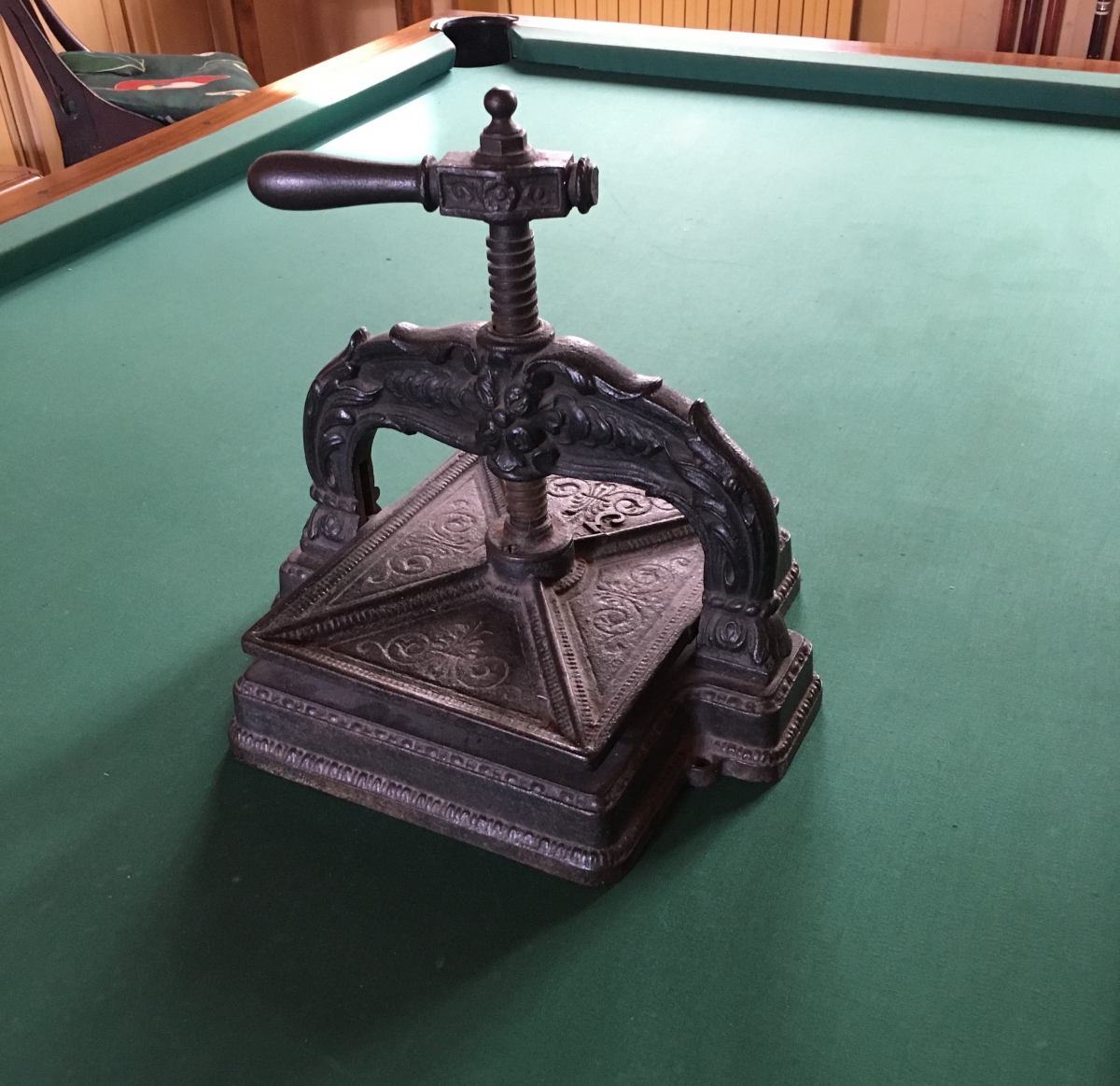 Objet de Métier de reliure : presse à relier les livres ou dite "de Notaire" - levée par vis sans fin, belle patine d'origine Napoléon III.