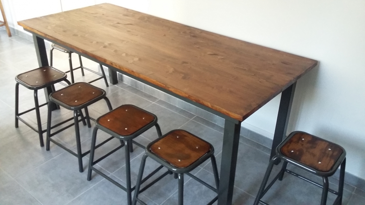 dimensions 2000mm x 860 avec 6 tabourets ecoliers restaurés.