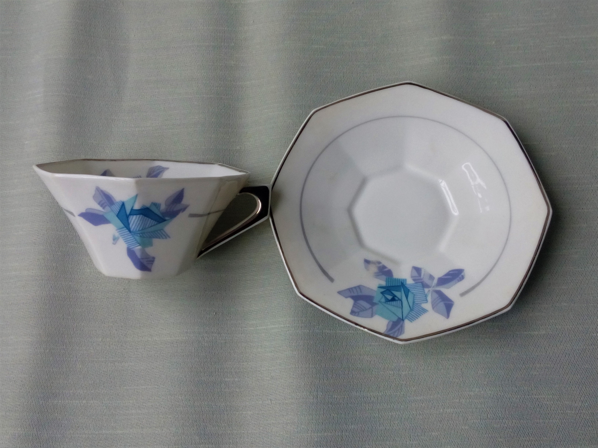 Service à café MC&Cie, porcelaine de Limoges, motif floral géométrique, années 1920