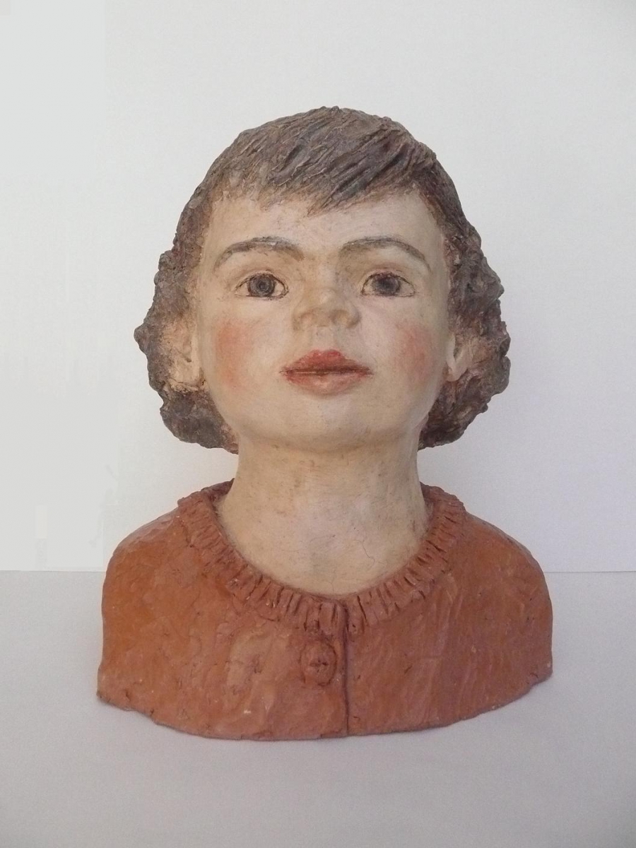 buste d'enfant en terre cuite blanche et rouge finition acrylique et cire