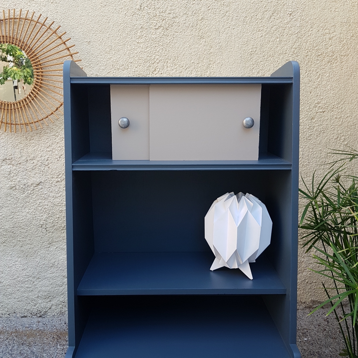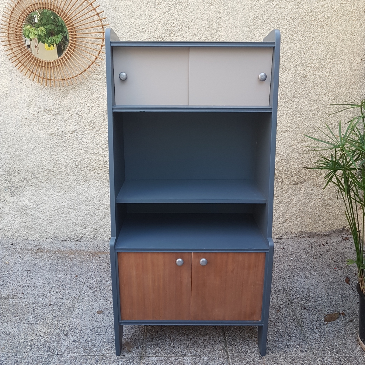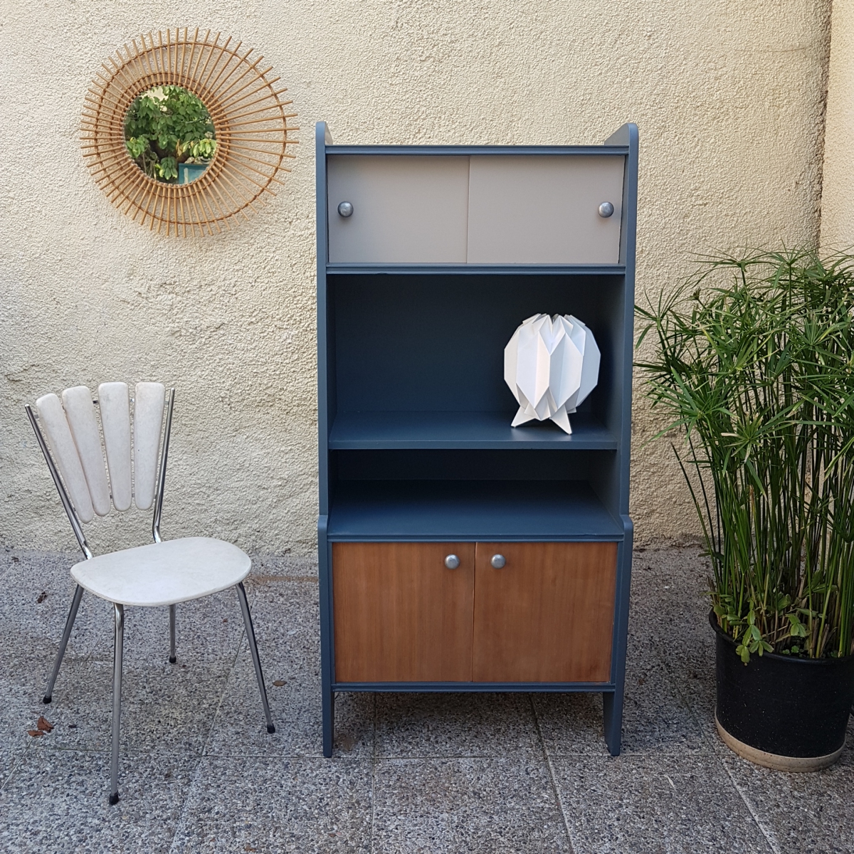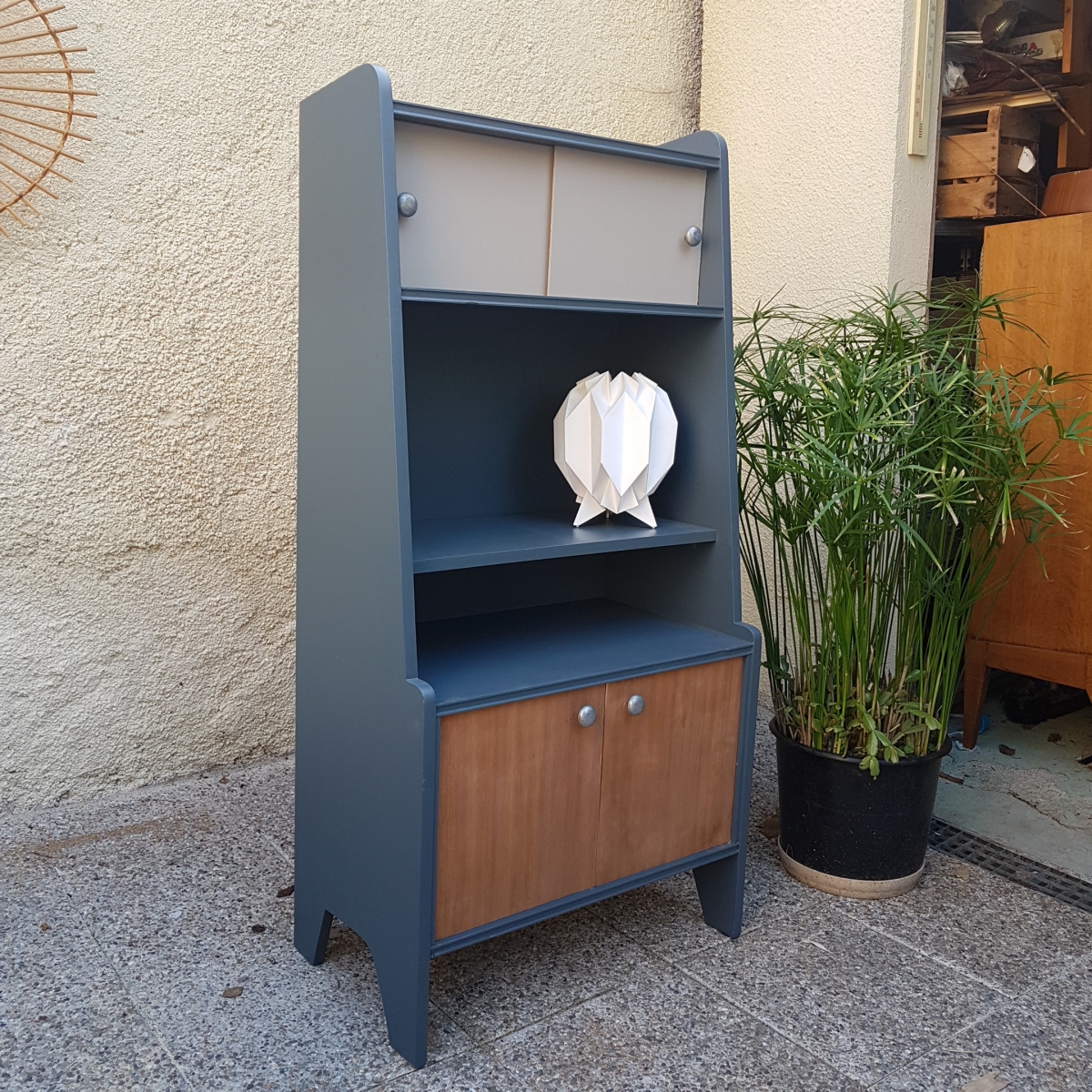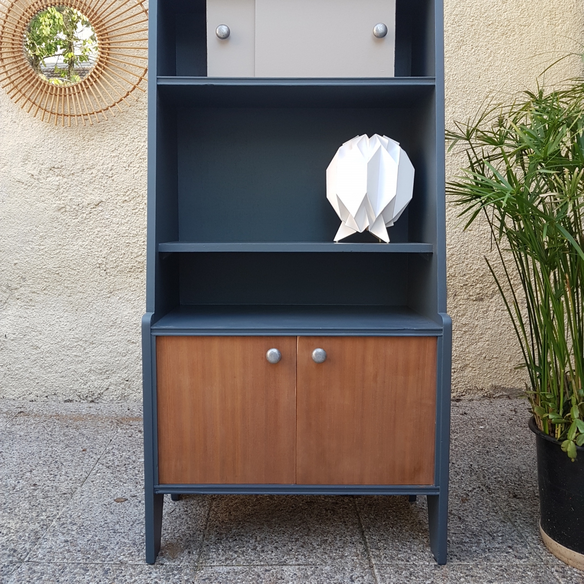 Bibliothèque vintage en bois annees 50 pouvant servir de vitrine.