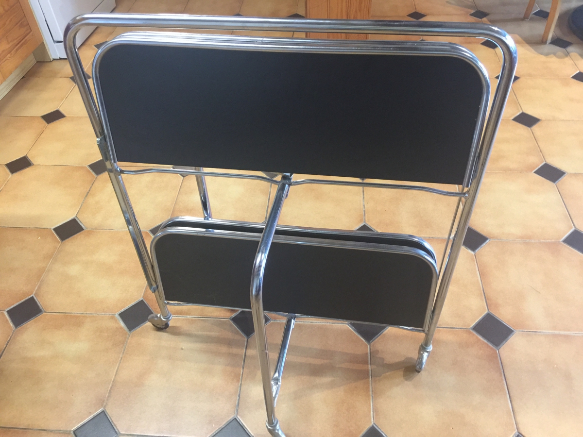 Bien campée sur ses 4 petites roues, cette desserte pliante vintage est pourvue d’un astucieux mécanisme qui permet de la plier ou la déplier en un tour de main.