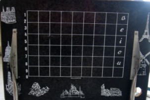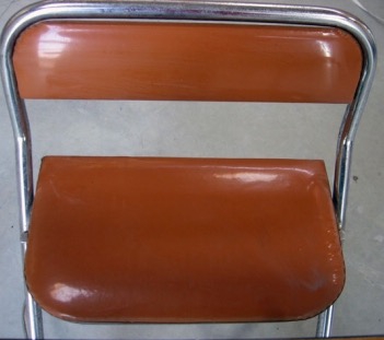Bureau pliant, plateau en mélaminé côté face, en ardoise côté pile, siège en skai et tubulure acier.