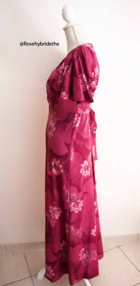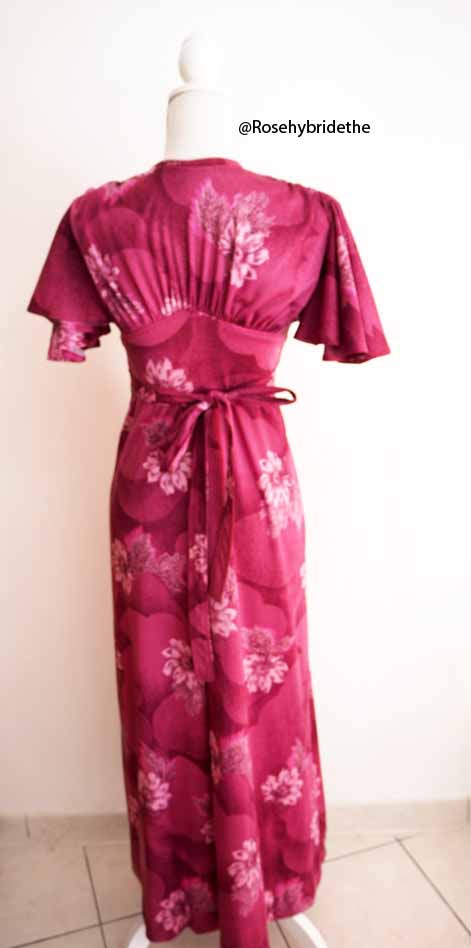 Robe longue manches papillons zip rose violine fleurie vintage 70s