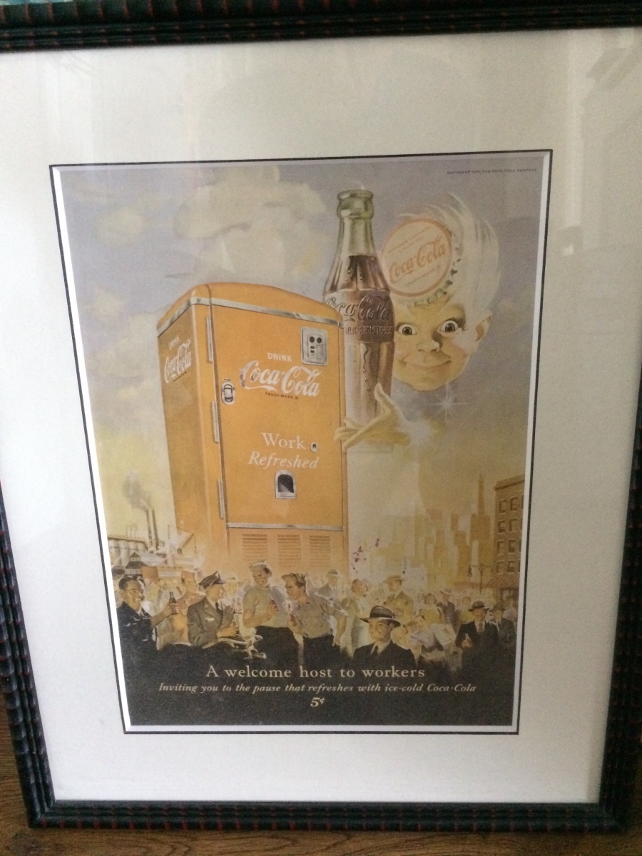 Ancienne affiche Coca Cola encadrée des années 50 , 40cm x50 cm