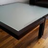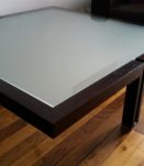 Table carrée Roche Bobois dimensions: 120X120cm en bois Vengé et verre sécurit Pieds magnifique style contemporain