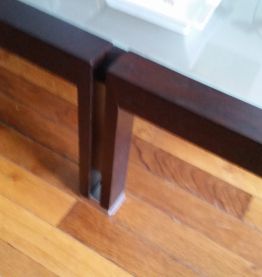 Bonjour. Cette table a été acheté en 2009 et elle est bien entendue de 1er main. Son pris neuve était de 360€ . C'est le prix mini aujourd'hui d une table basse de chez Roche Bobois. Il suffit de se renseigner et voir les prix actuel du table basse en massif de wenge. Hors de pri. Il n y a aucune cette table est d un bloc de bois travaillé. Si vous souhaitez me communiquer un numéro je vous adresse des photos. Bonne fin de journée. Cordialement