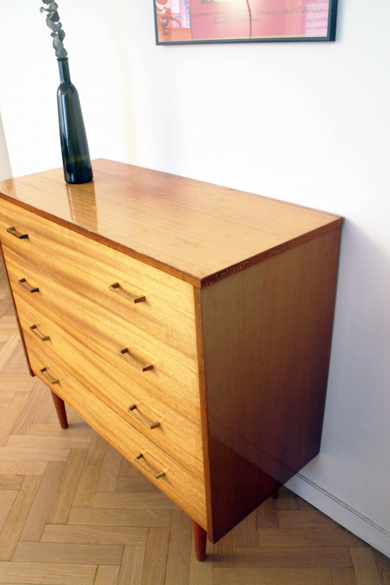 Superbe commode vintage des années 60 aux pieds compas style scandinave.