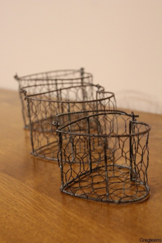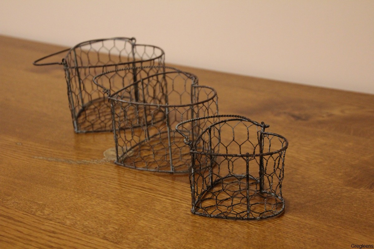 Ensemble de 3 paniers grillage en forme de cœur pour déco, compositions florales, rangement dans salle de bains...