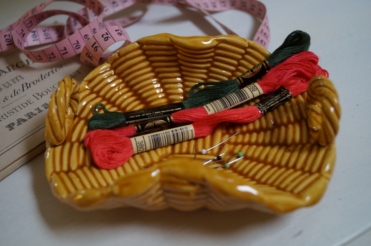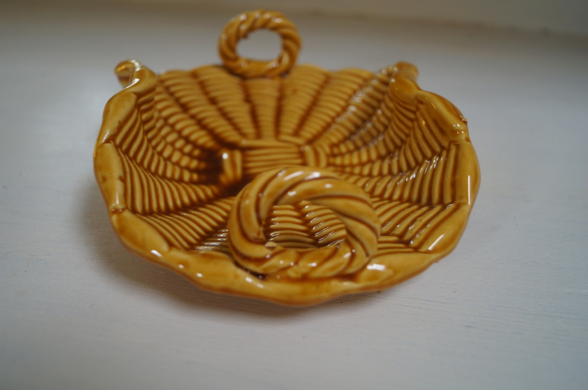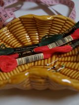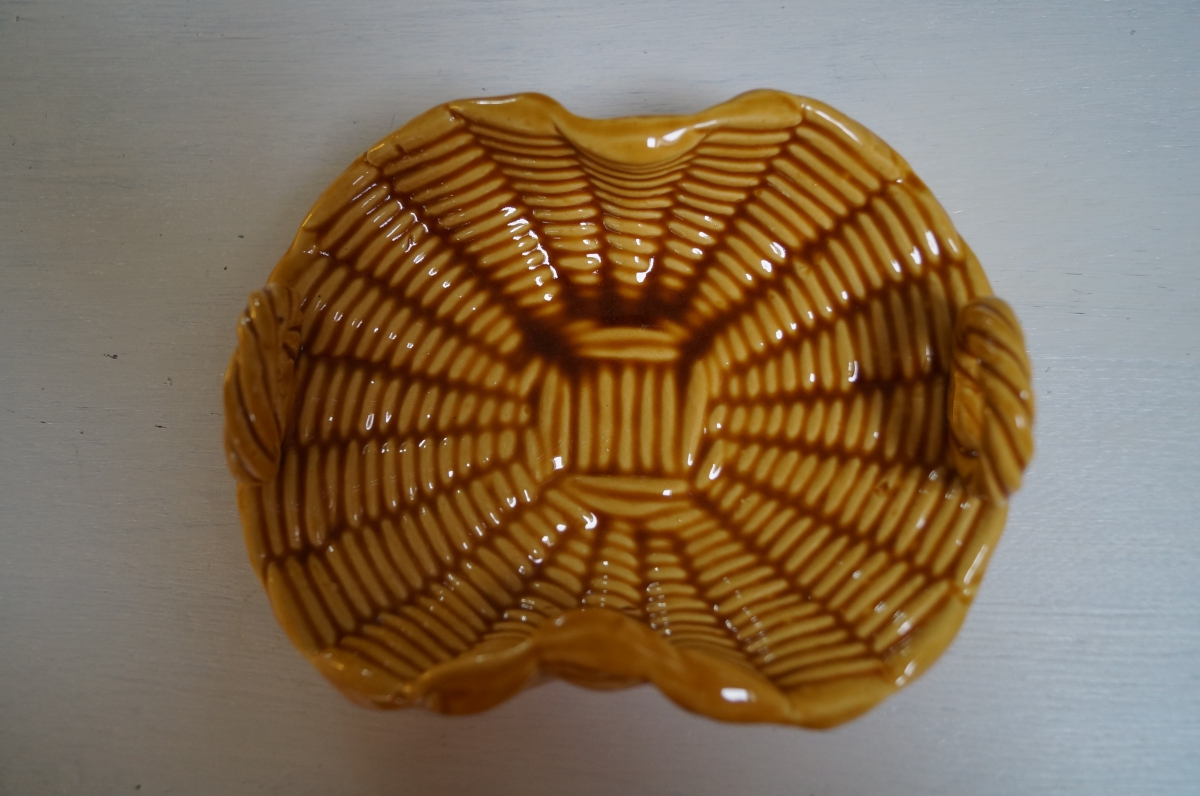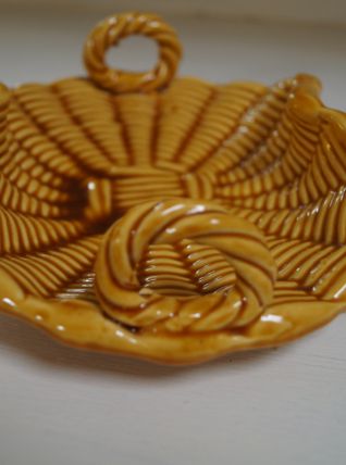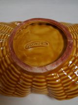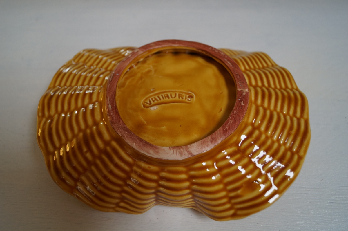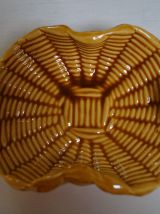 Vide-poche en céramique de Vallauris, imitant la forme d'une corbeille ainsi que la couleur et le tissage de l'osier.