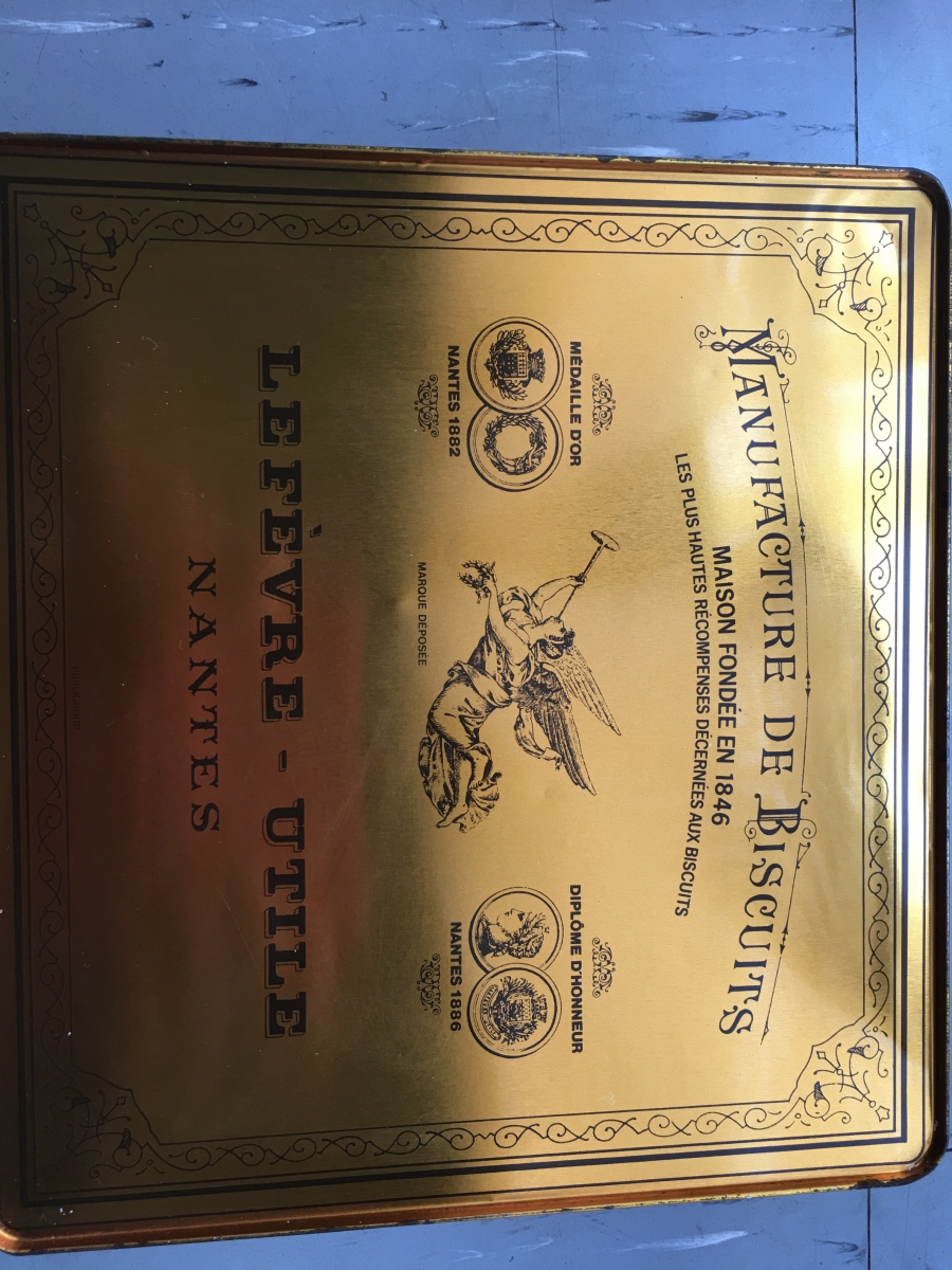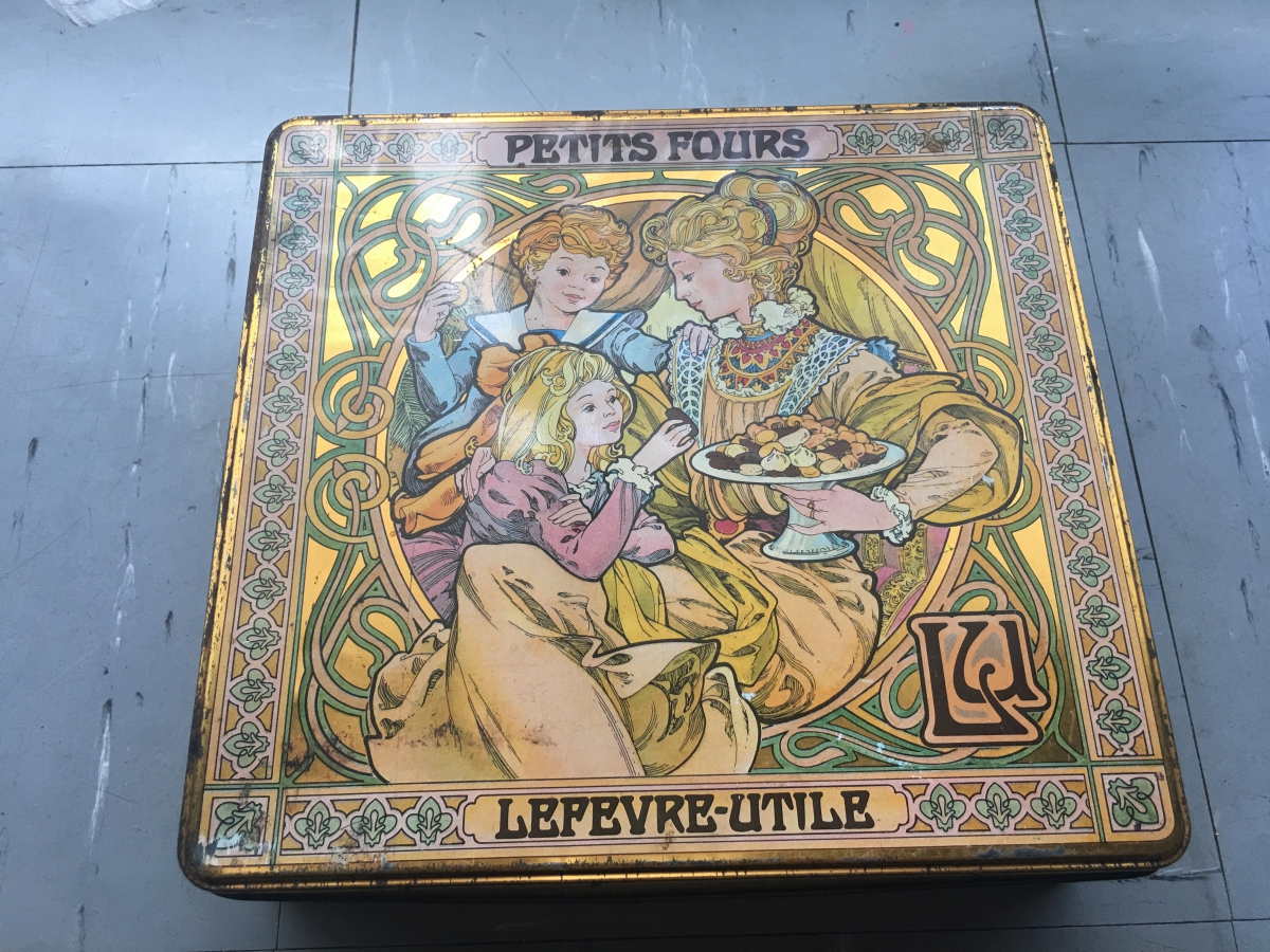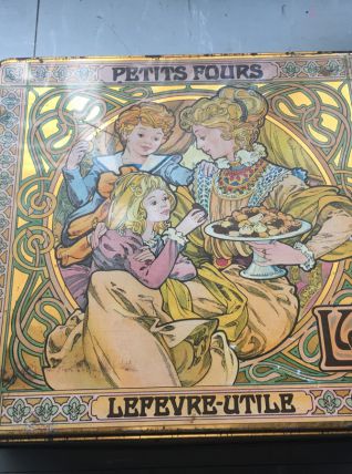 Ancien boite d biscuit Lefèvre Utile Lu Nante maison fondu 1846