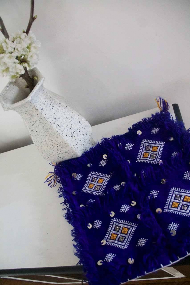 Housse coussin brodé main petit-point, pure laine DMC 42x42