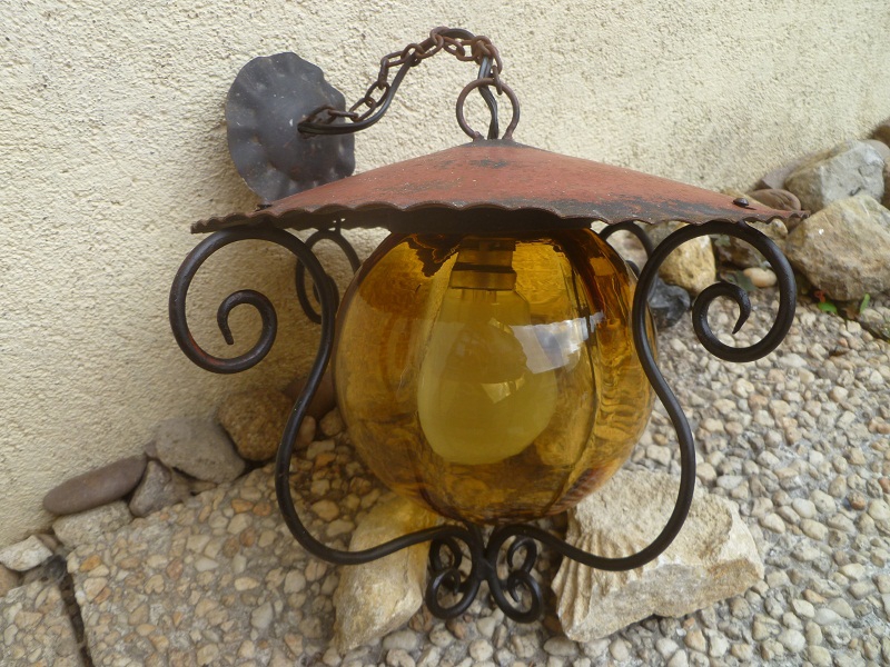 globe en verre moulé couleur jaune forme type potiron (dessin)