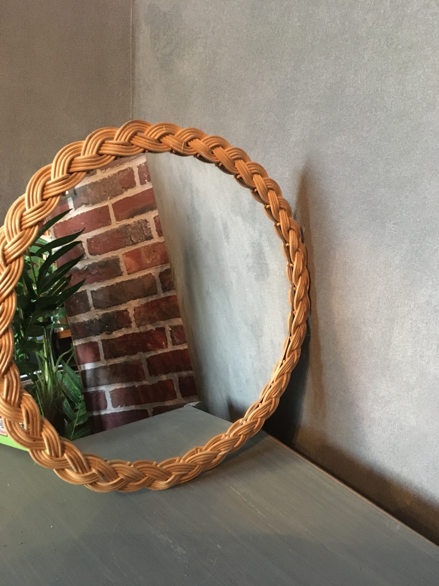 Très beau miroir rond d'un diamètre de 31 cm avec son entourage en osier.