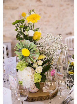 La 1ère photo est une vraie photo de notre centre de table avec le rondin.