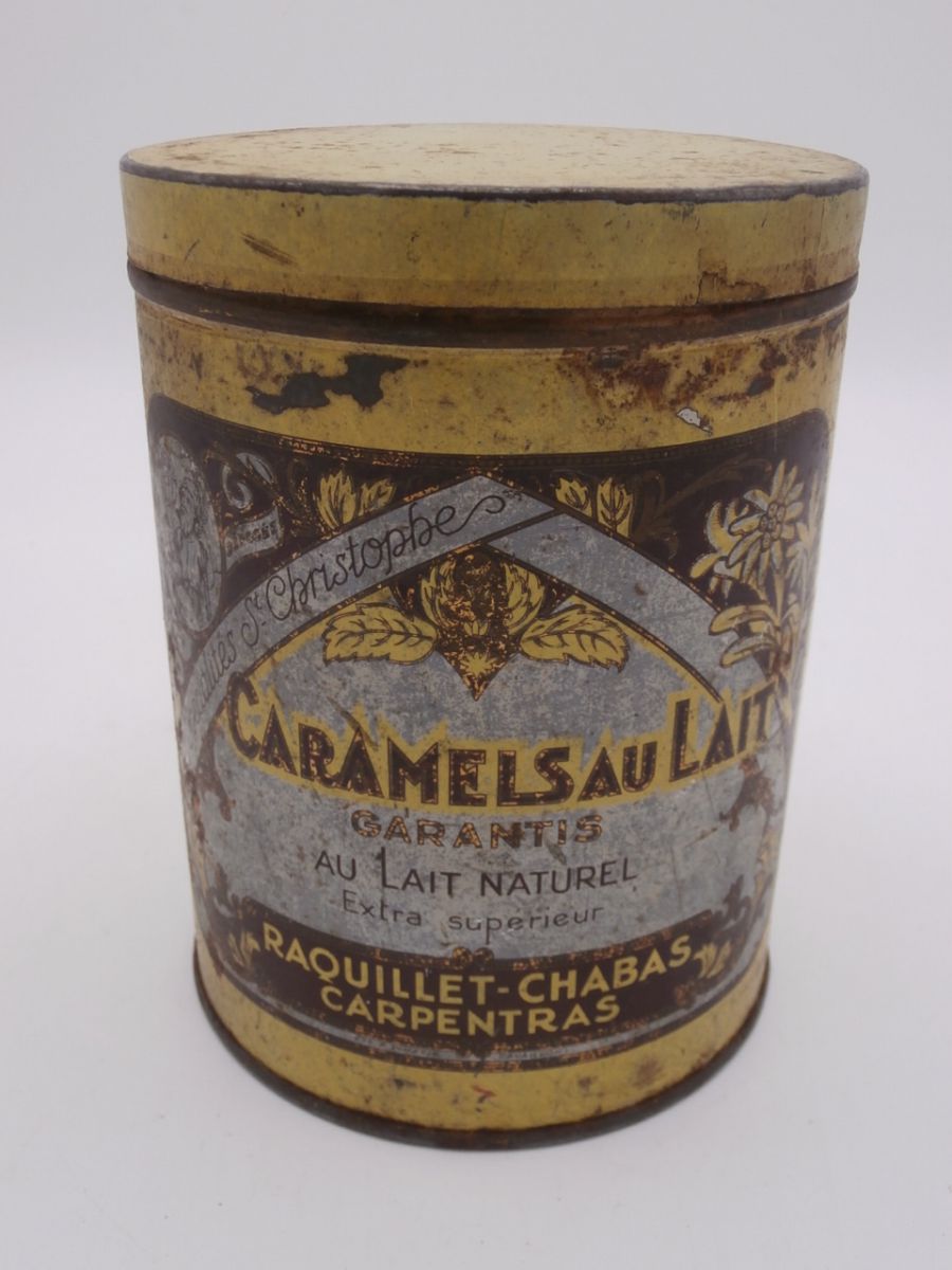 Lot de 3 anciennes boîtes en métal dans les tons jaunes :