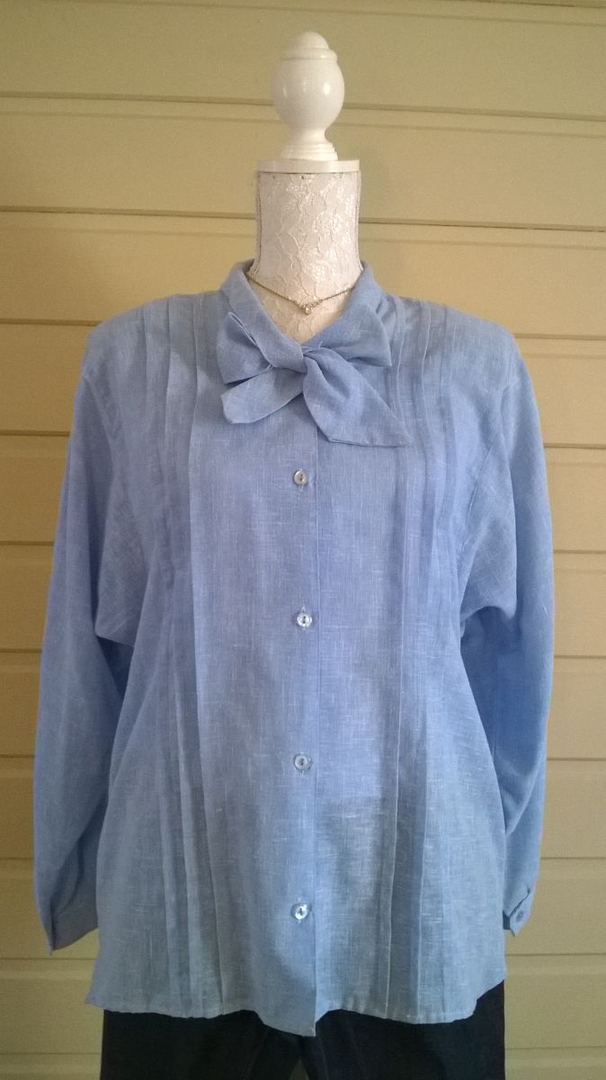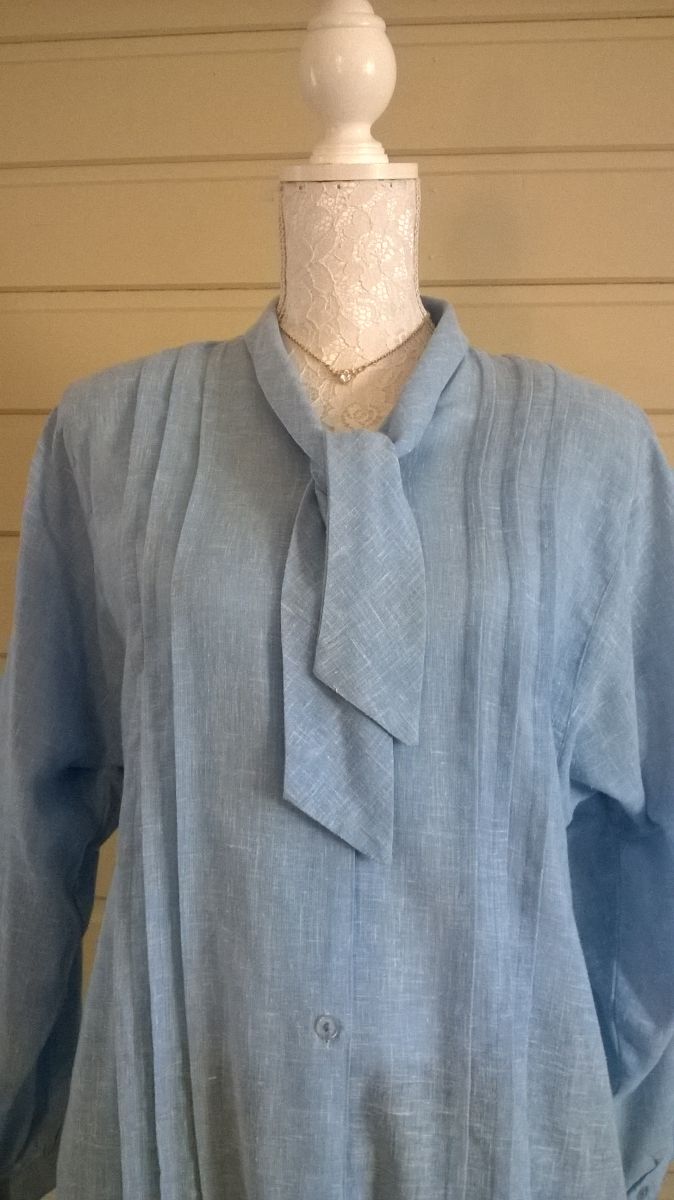 Impeccable chemisier tramé couleur denim clair (mensurations exactes sur la dernière photo)