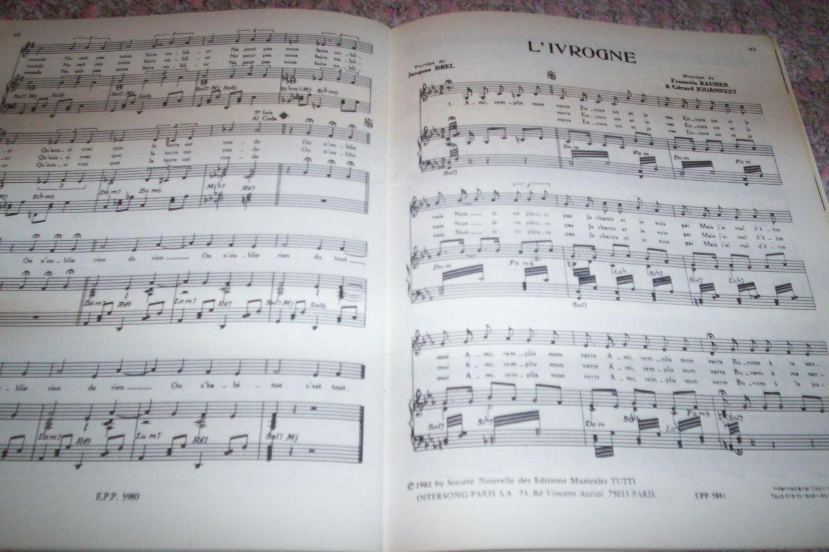 album cartonné semi rigide souple des années 70 partitions musicales paroles et musique de jacques Brel d'occasion en très bon état propre .