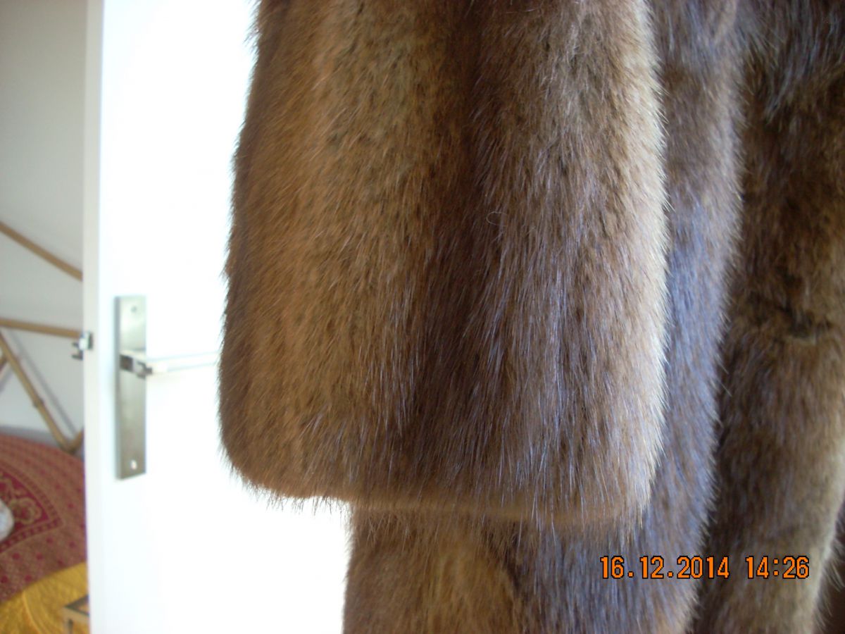 Manteau fourrure Rat f'Amétique T 42 . Long 1,20 m). Très belle fourrure qui ne perd jamais ses poils. Doublure en très bon état, Peut être porté tel quel ou transformé.