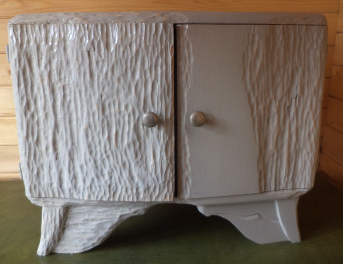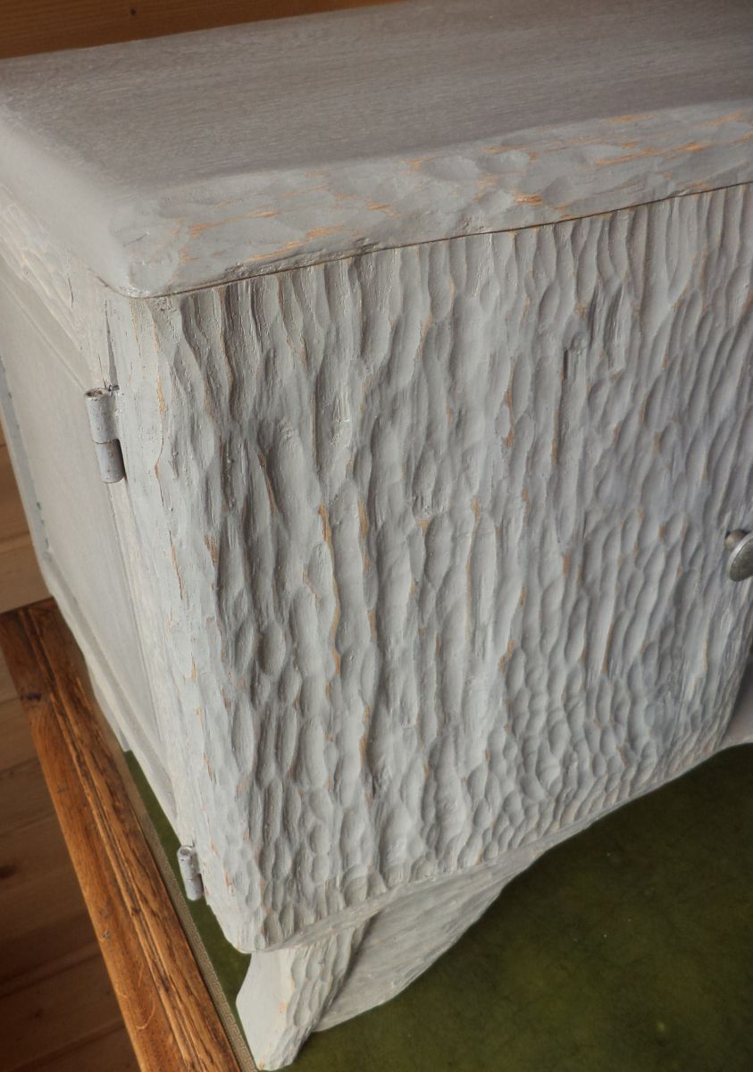 ELLE EST SCULPTEE D'UNE FACON ALEATOIRE, ENSUITE ELLE EST PONCEE PUIS PEINTE (4 couches de peinture 2 couches de vernis satiné)