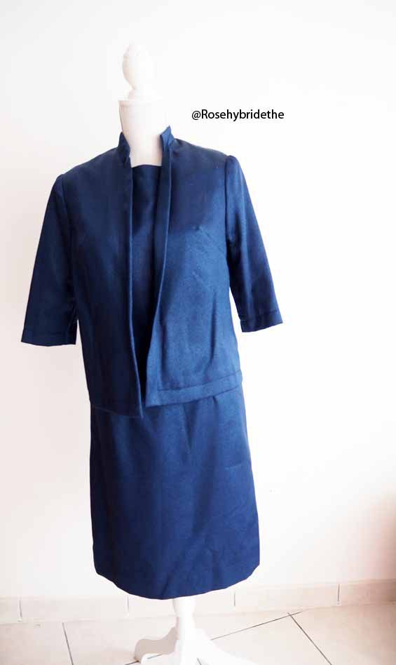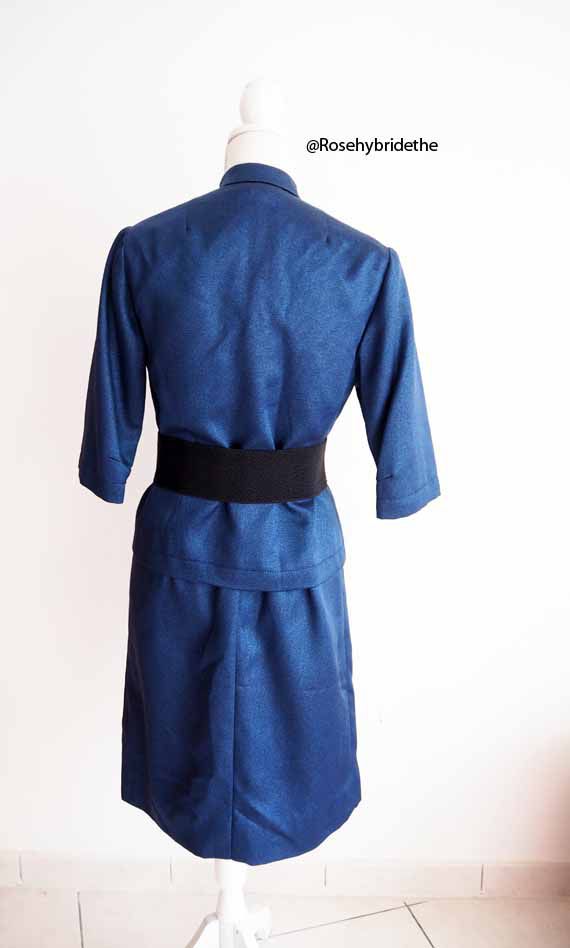 Ensemble tailleur robe et veste bleu métallisé Jacky Kennedy vintage 60's