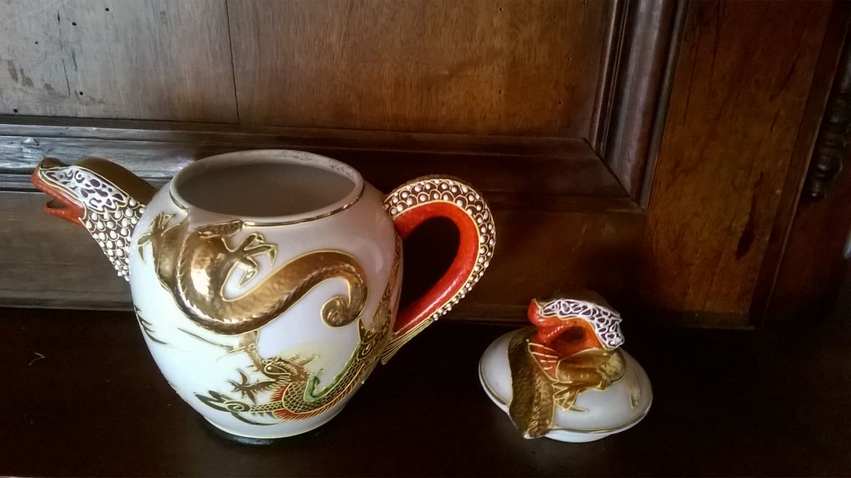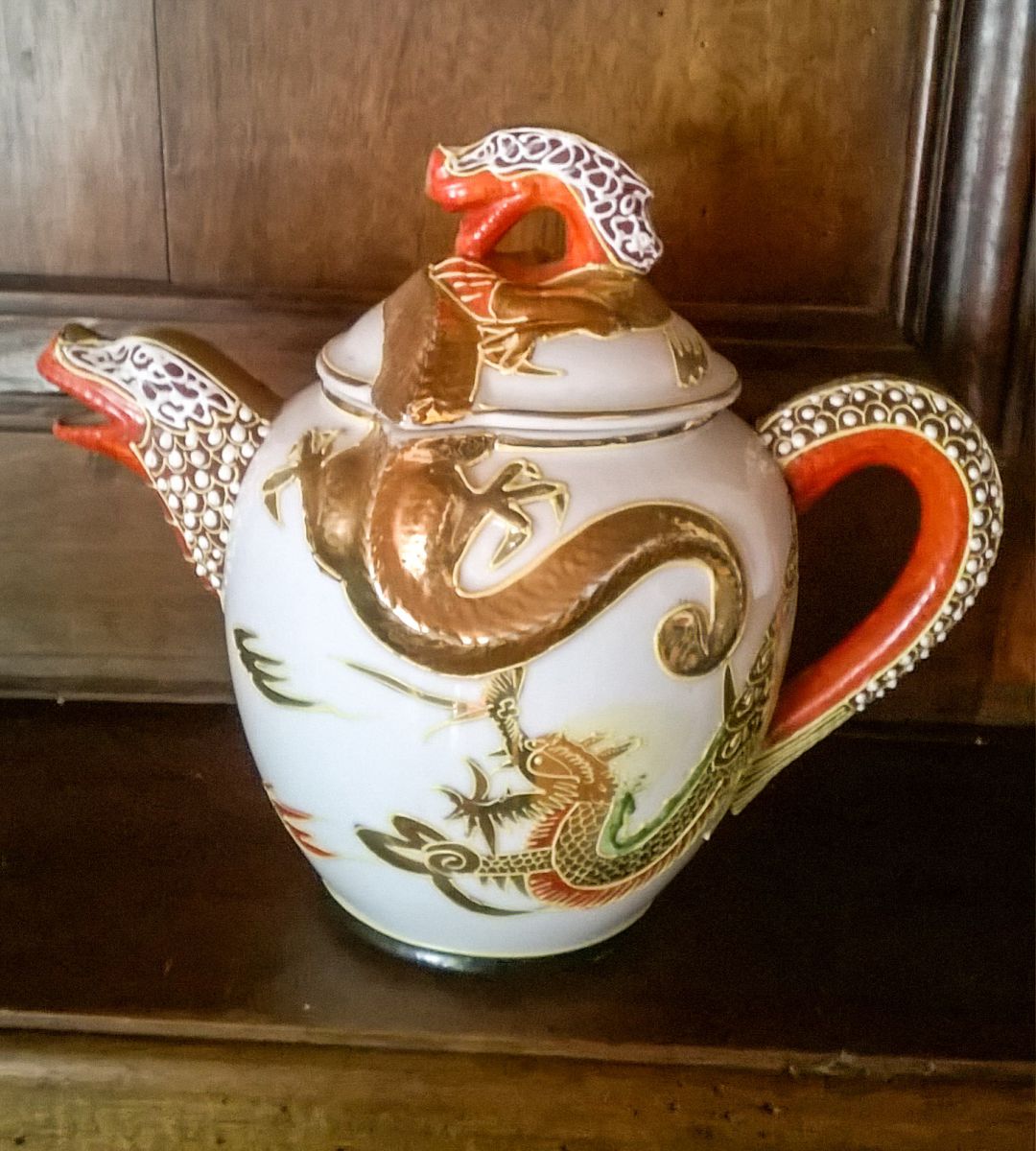 peinte à la main en relief avec son dragon partant du pot pour finir sur le chapeau