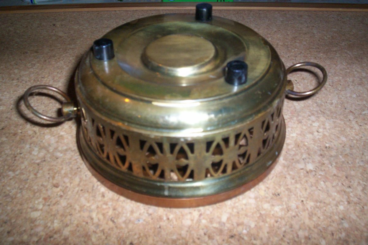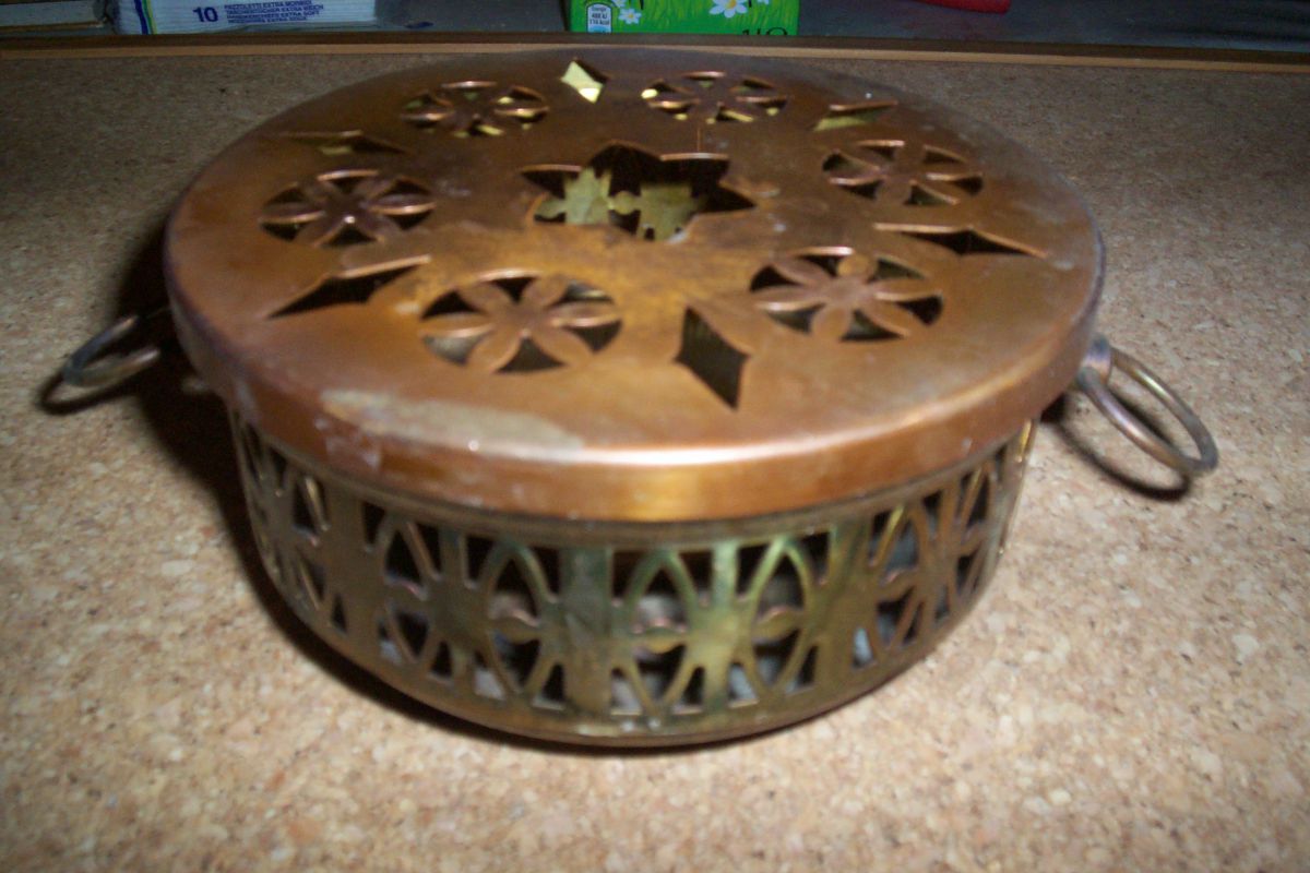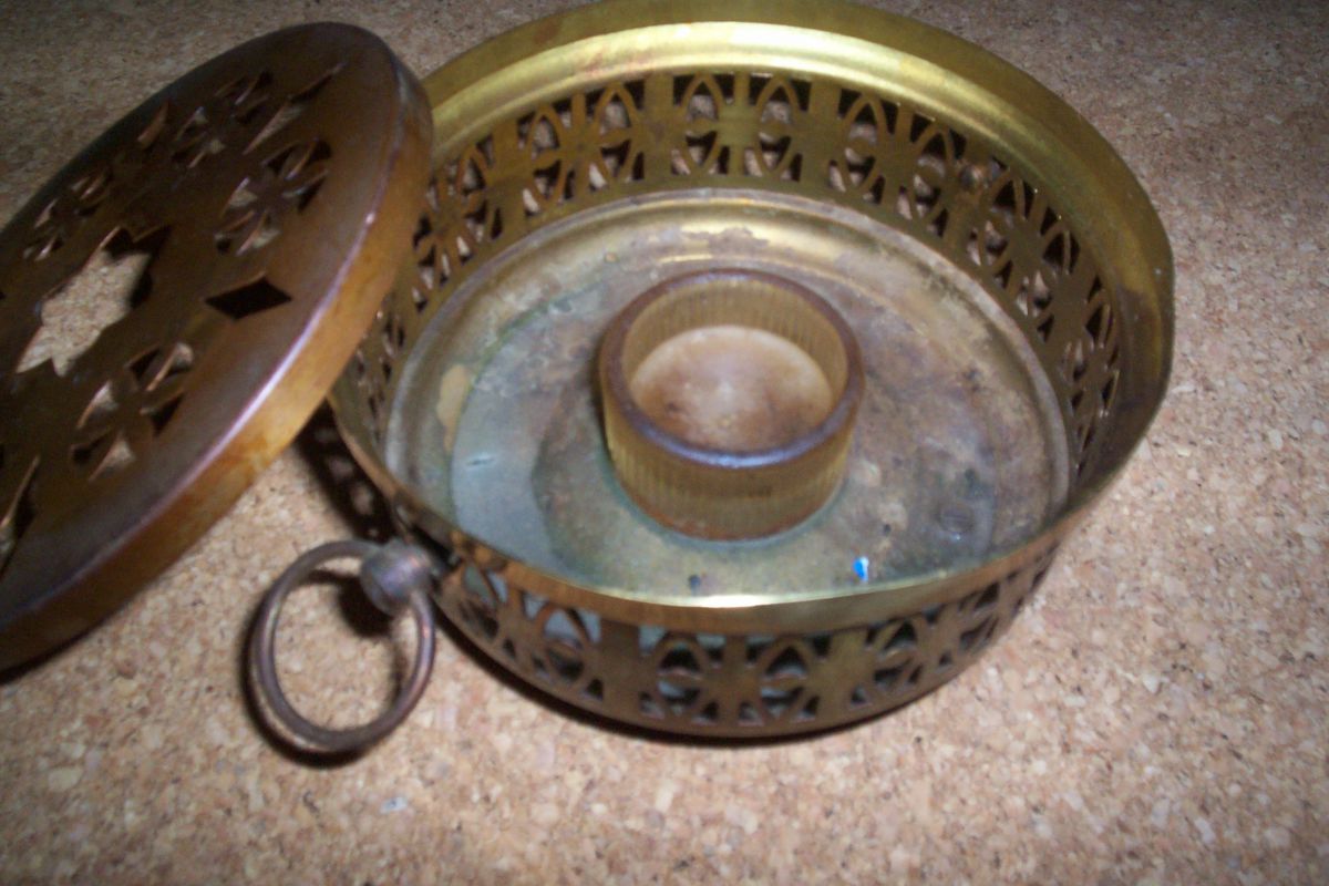 original coffret ron dentellé en cuivre pour bougie parfumée utile pour receptions fetes diametre 17 cm ou + bel objet en très bon état et sécurisant .