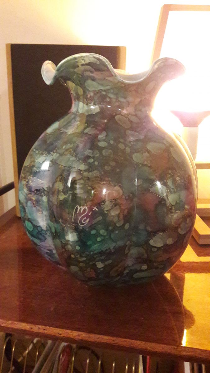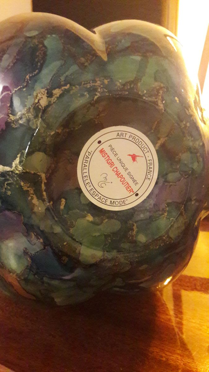 Vase en verre émaillé mistigri chapoutier pièce unique et signée