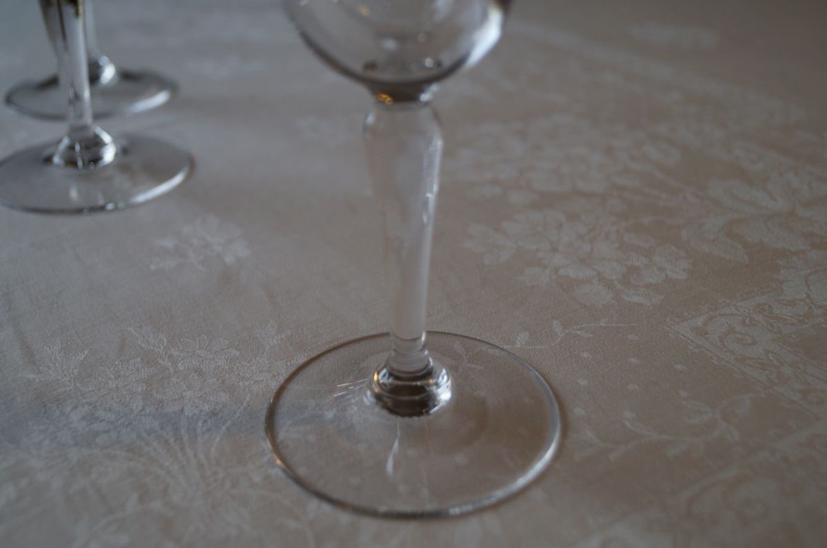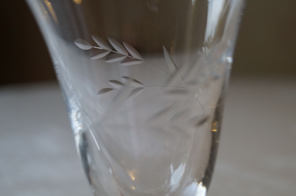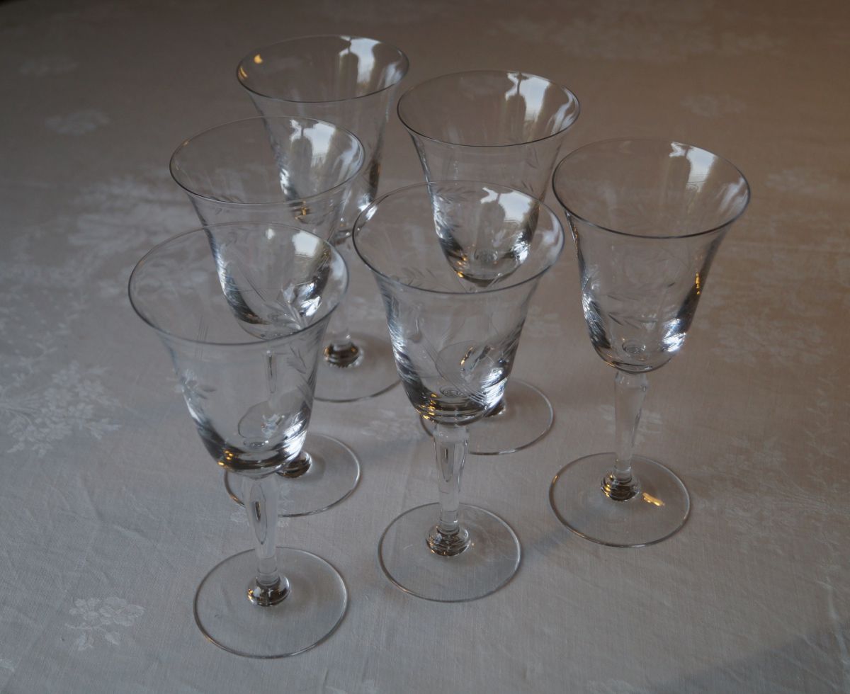 Ensemble composé de 6 verres à pieds vintage, décorés d'un motif "épis de blé" gravé de manière circulaire. De forme élancée, ils sont élégants, tout en présentant un évident charme rétro.