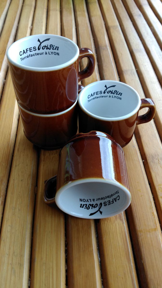 tasses à café publicitaires du torréfacteur et chocolatier VOISIN.