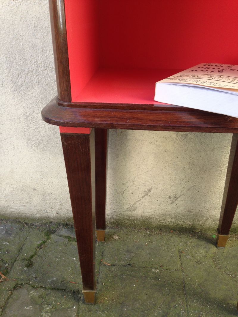 Le haut du piètement comporte lui aussi un rappel de couleur, les pieds sont terminés par des embouts en laiton.