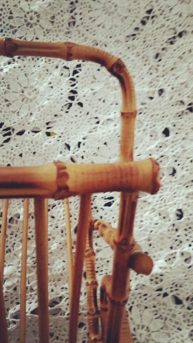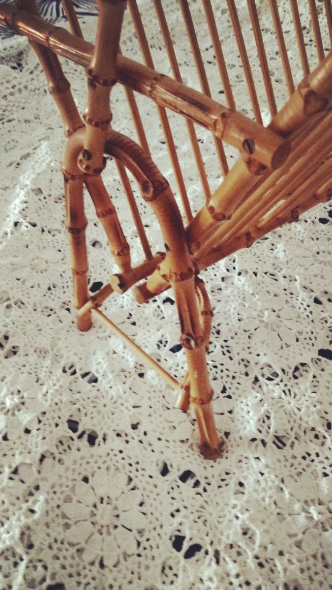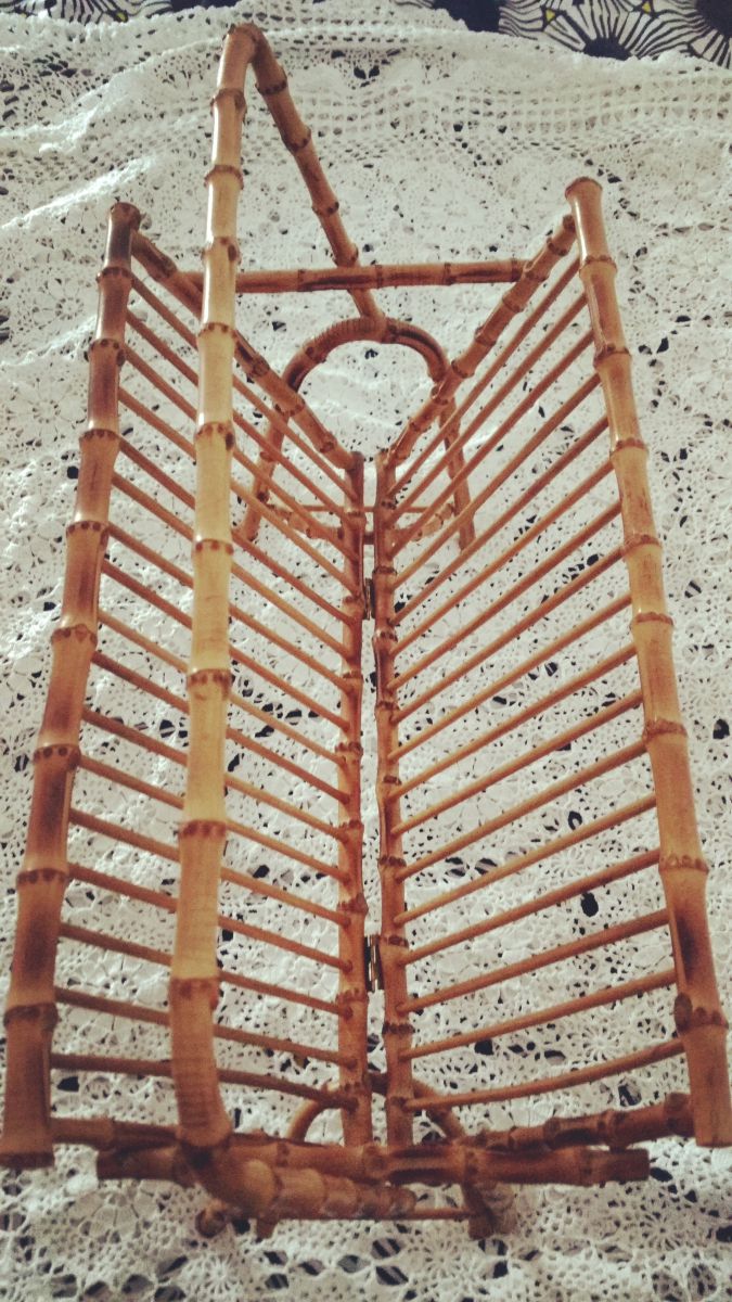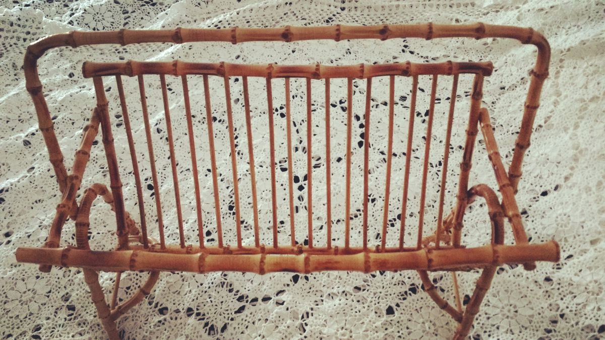très joli et original porte revues ou vinyls en bambou et rotin.