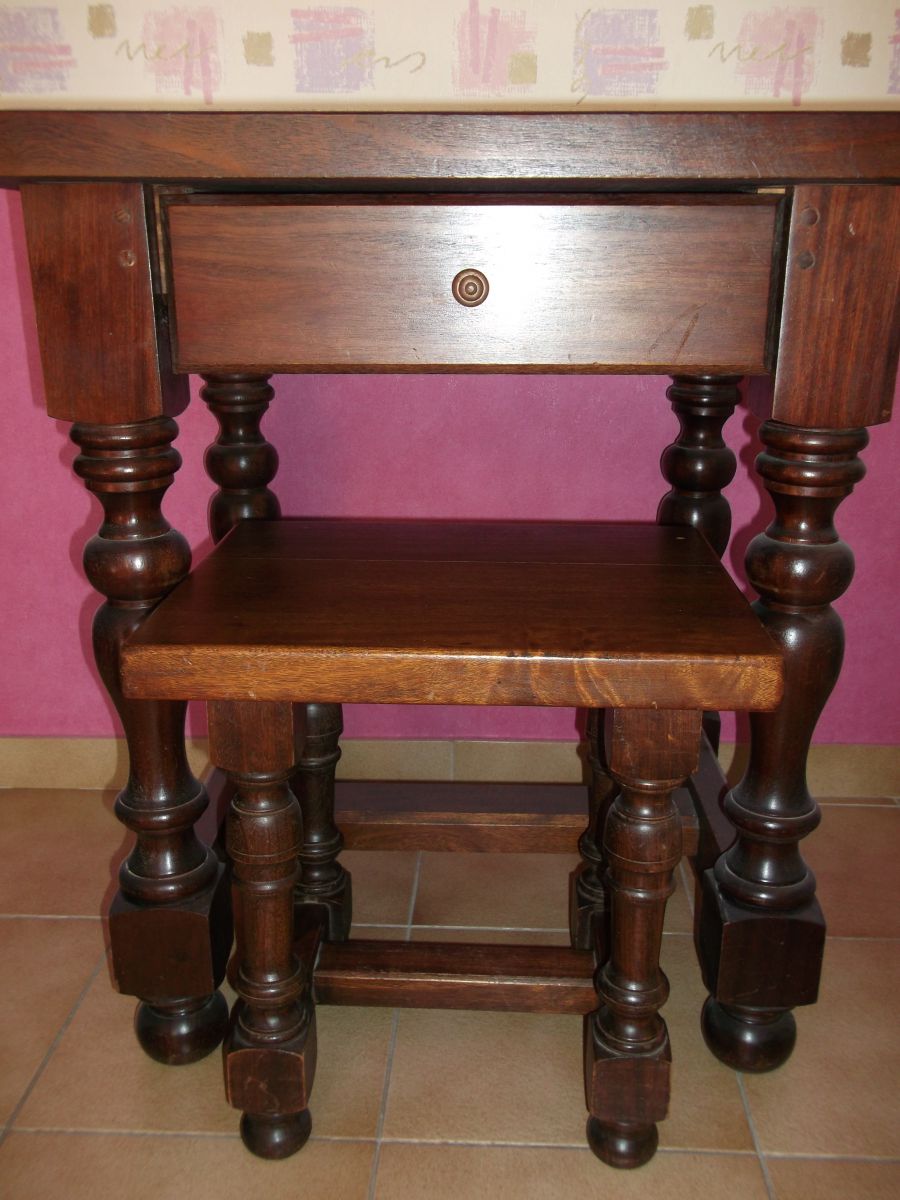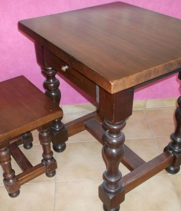 Table avec tabouret en bois massif