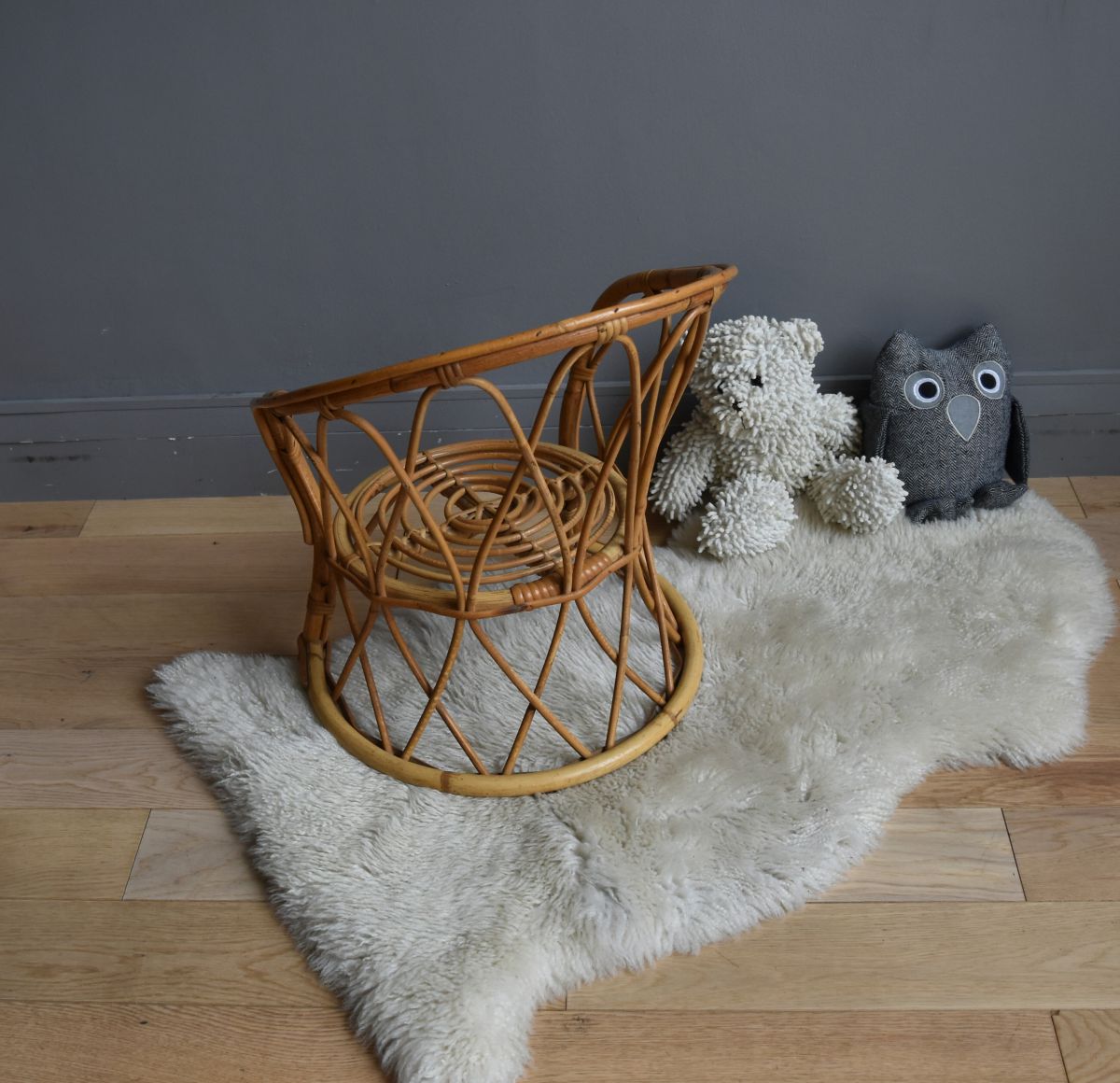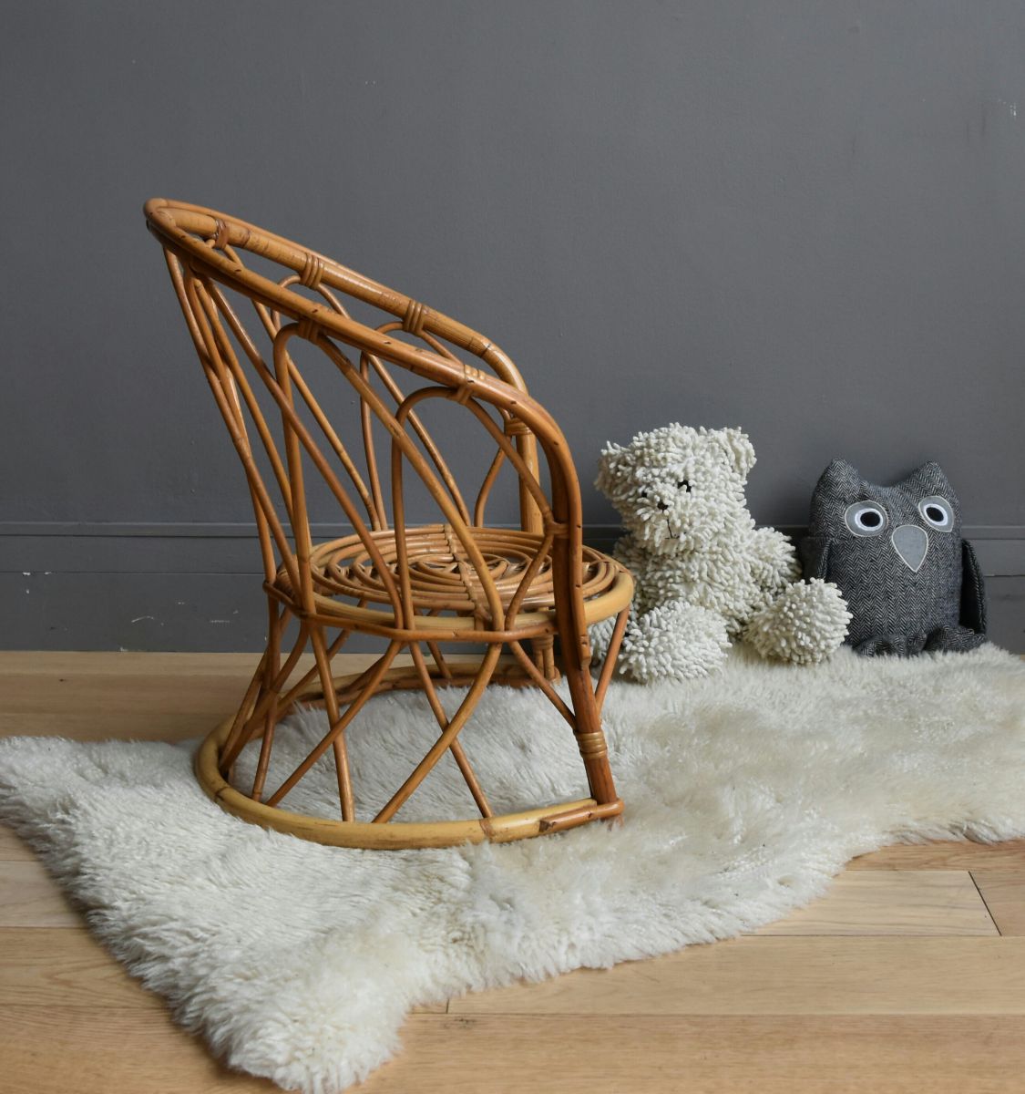 très beau fauteuil couleur miel en rotin des années 60 pour enfant.
