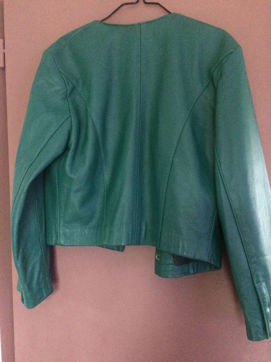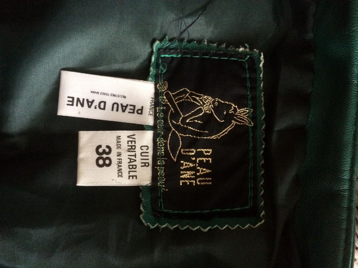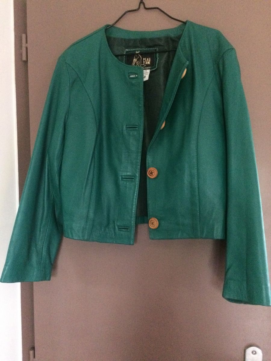 Très belle veste en cuir de couleur vert, de fabrication française, les épaulettes ont été retirées malgré son âge elle reste en très bon état.