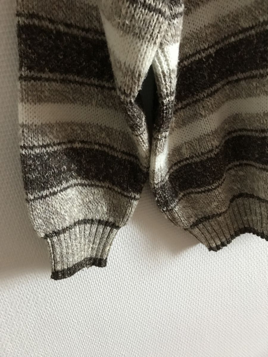 gros pull loose oversize, vintage, grosses rayures couleur marron et beige, matiere acrylique et laine, taille unique de M a XL, en tres bon etat