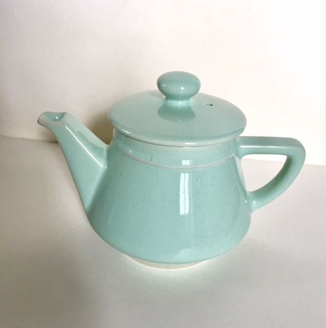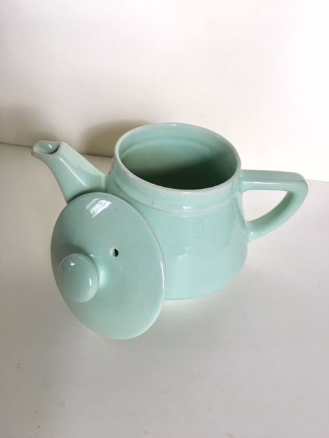 Charmante théière en faïence vert céladon années 50 en parfait état.