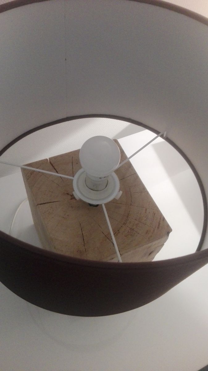 Le pied de la lampe est en bois brut, de dimensions suivantes :