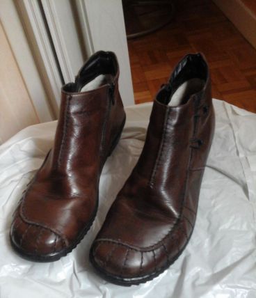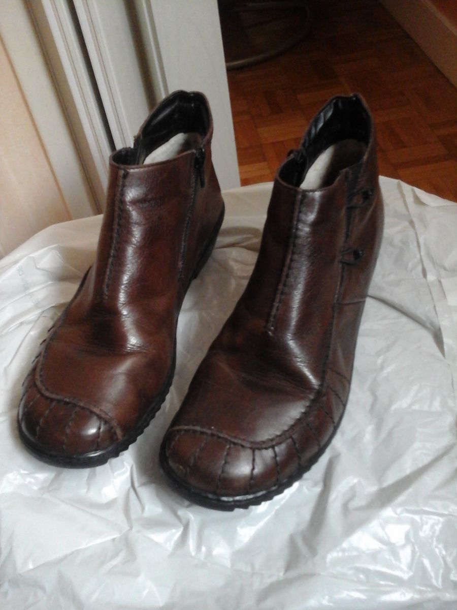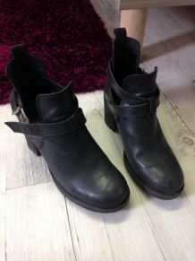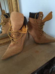 Très peu portées. Dessus cuir, semelles synthétiques, fourrées laine. Talons légèrement biseautės