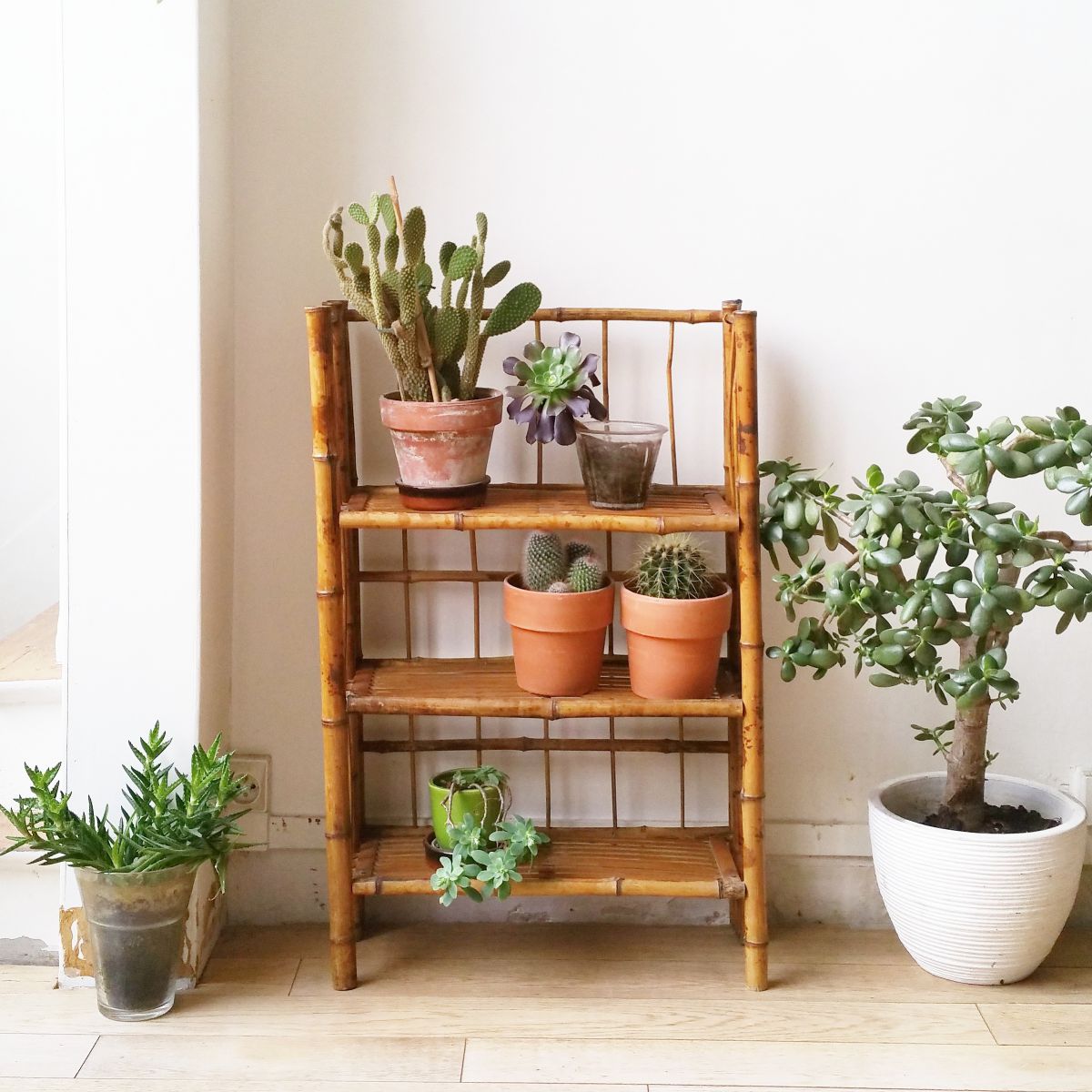 Petite bibliothèque des années 60 en rotin bambou en très bon état
